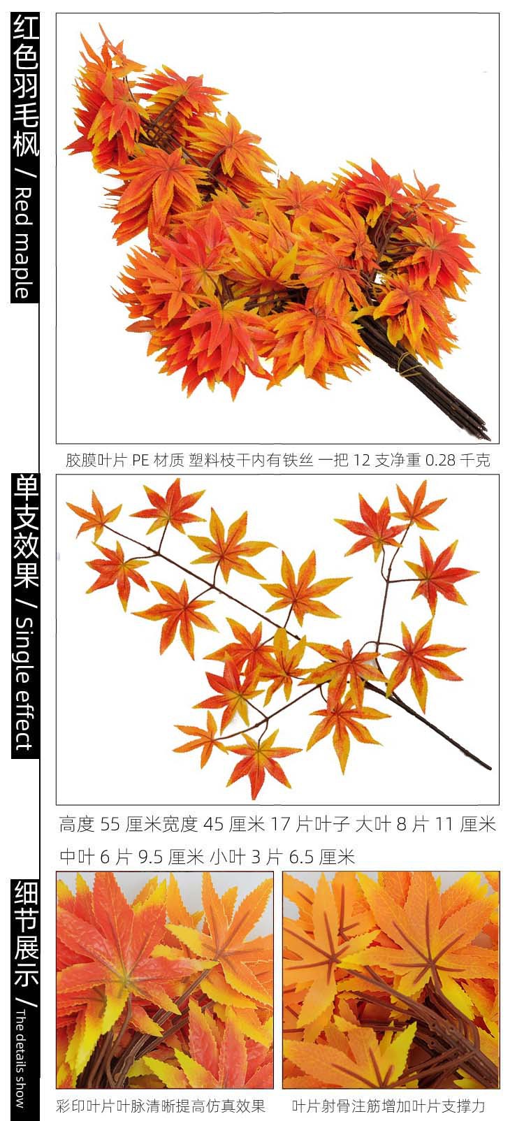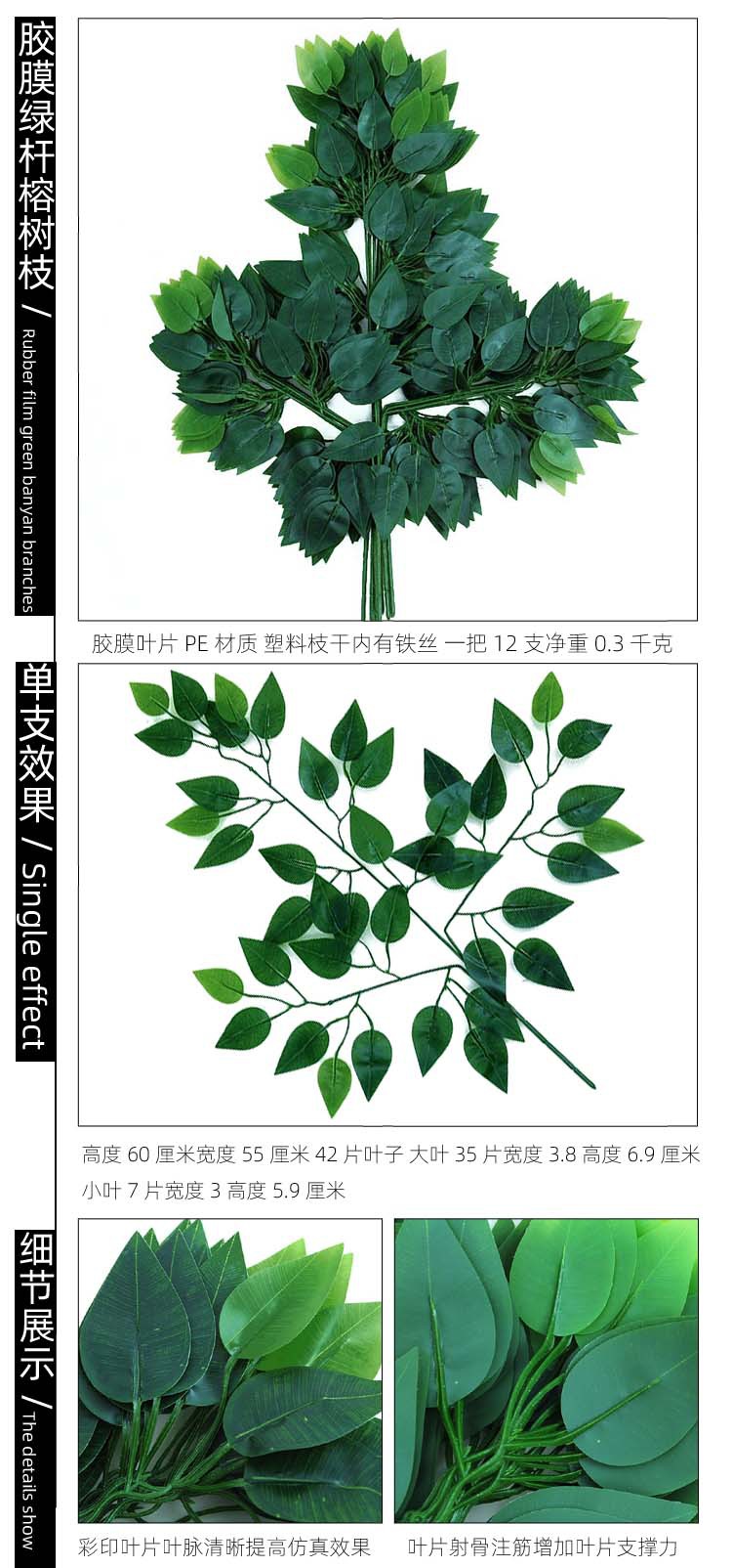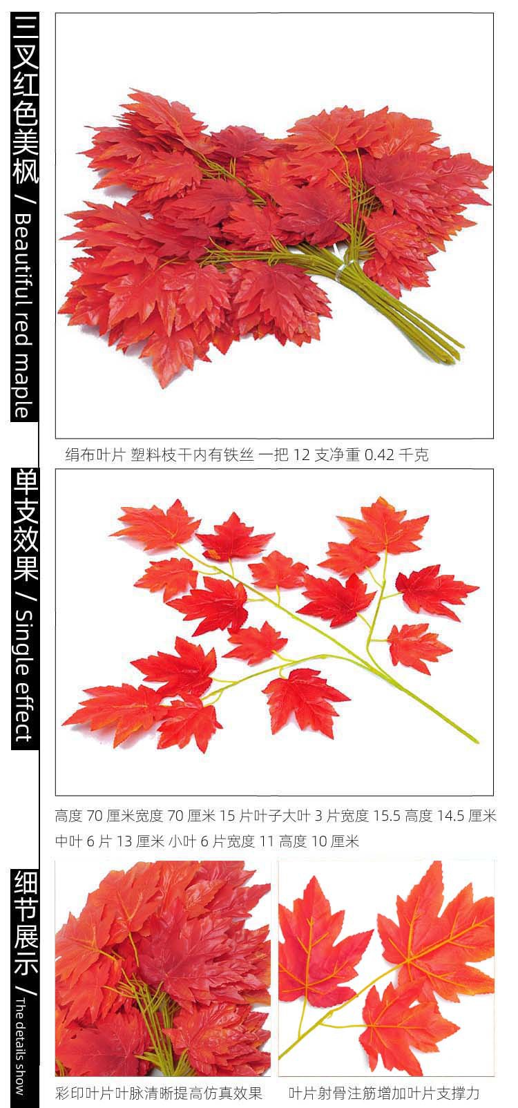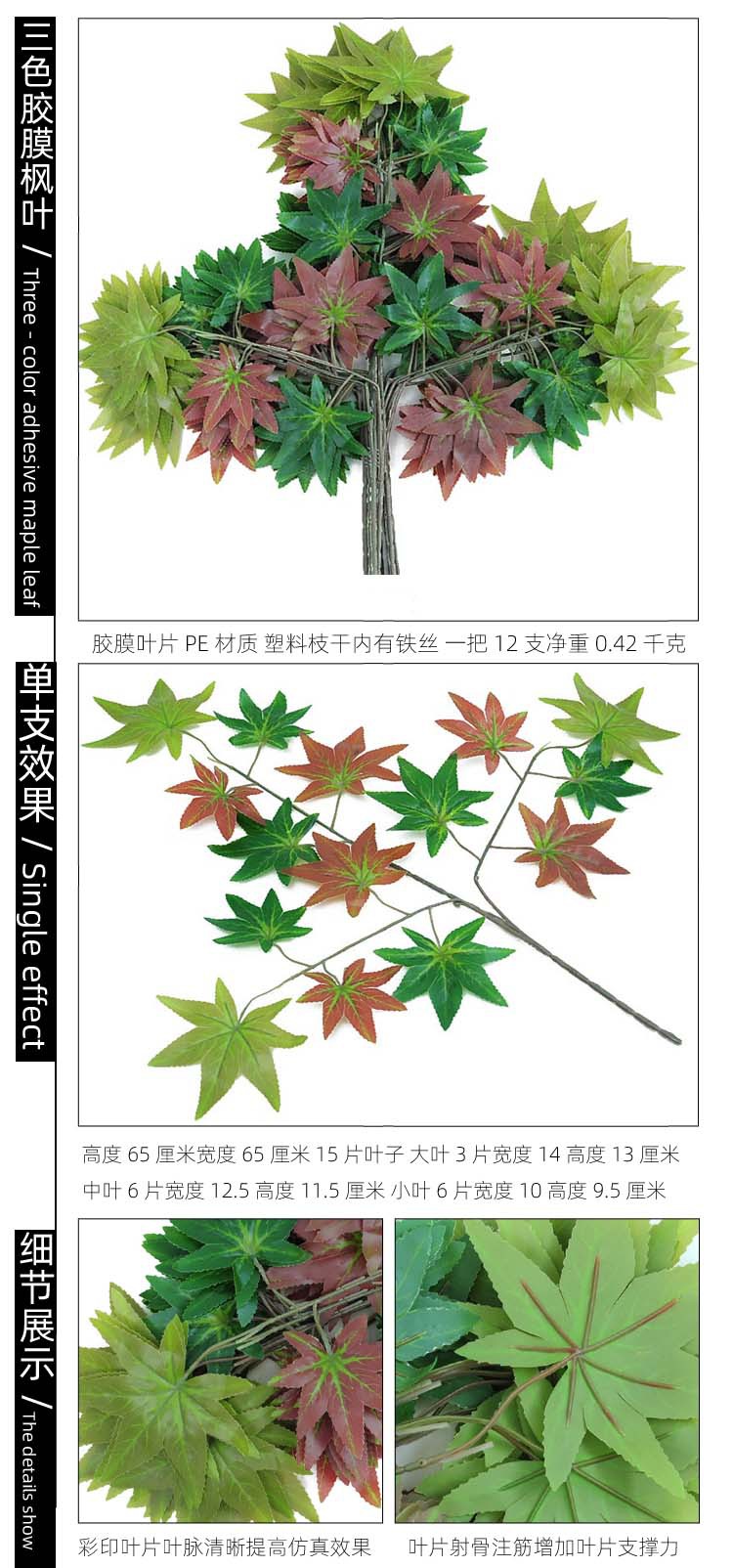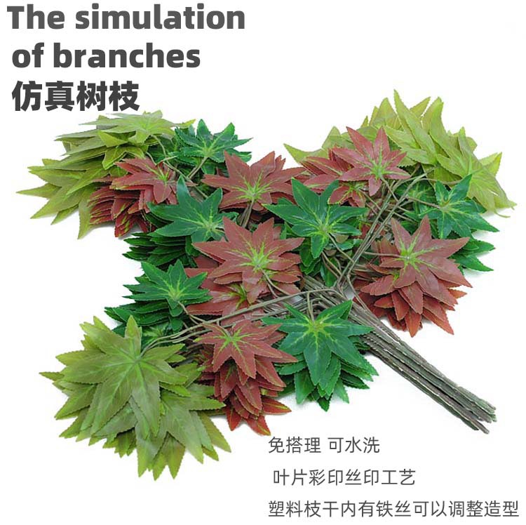 Hoja de arce rojo artificial Banyan Branch hojas paisajismo jardín decoración mango falso hojas de ginkgo hojas artificiales ramas