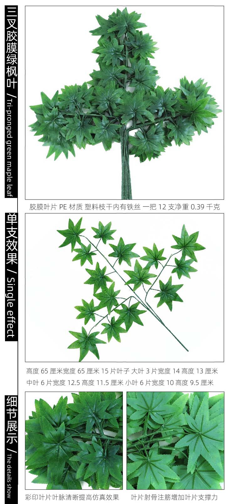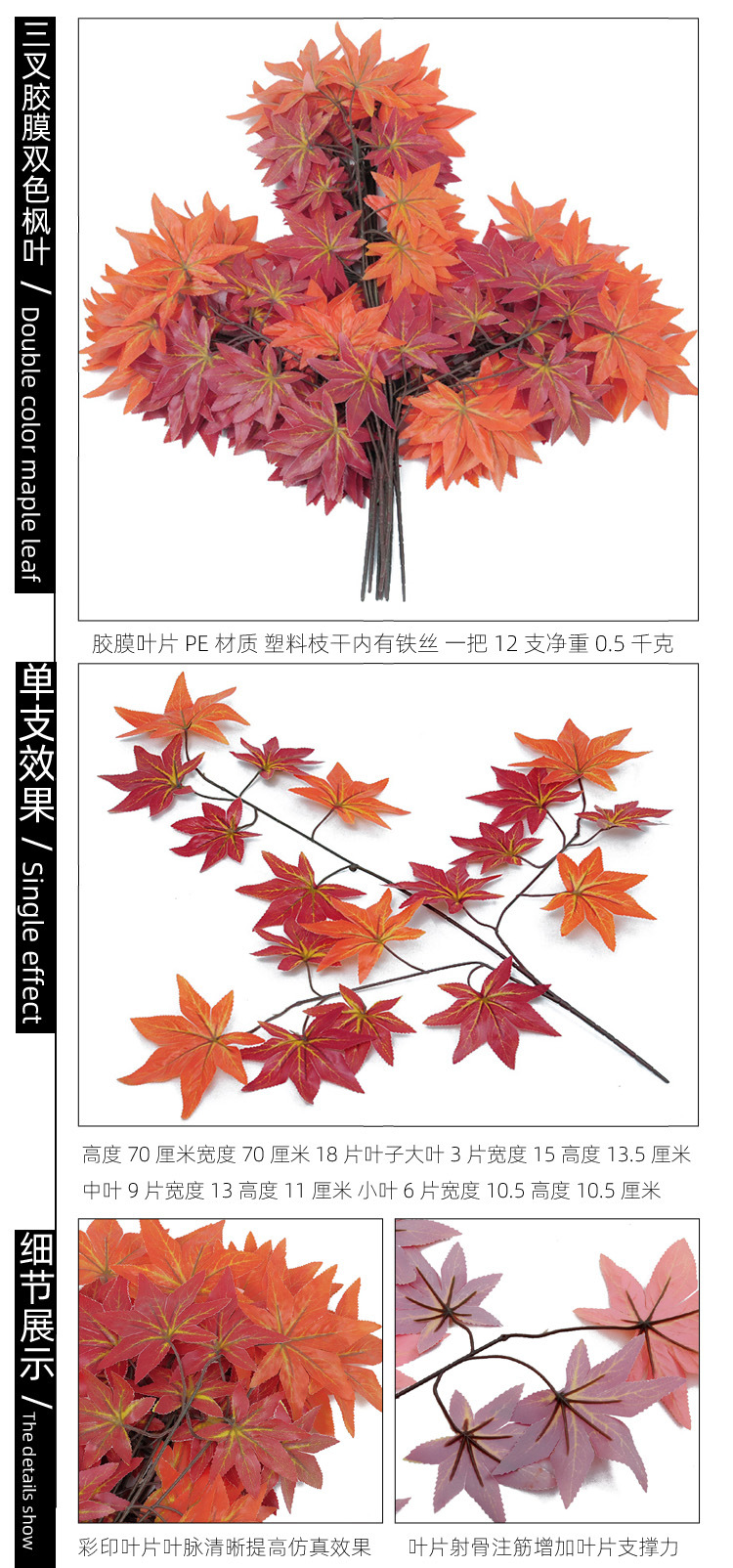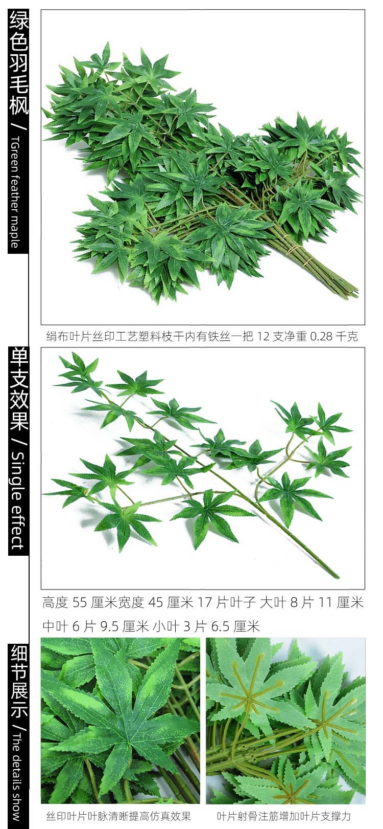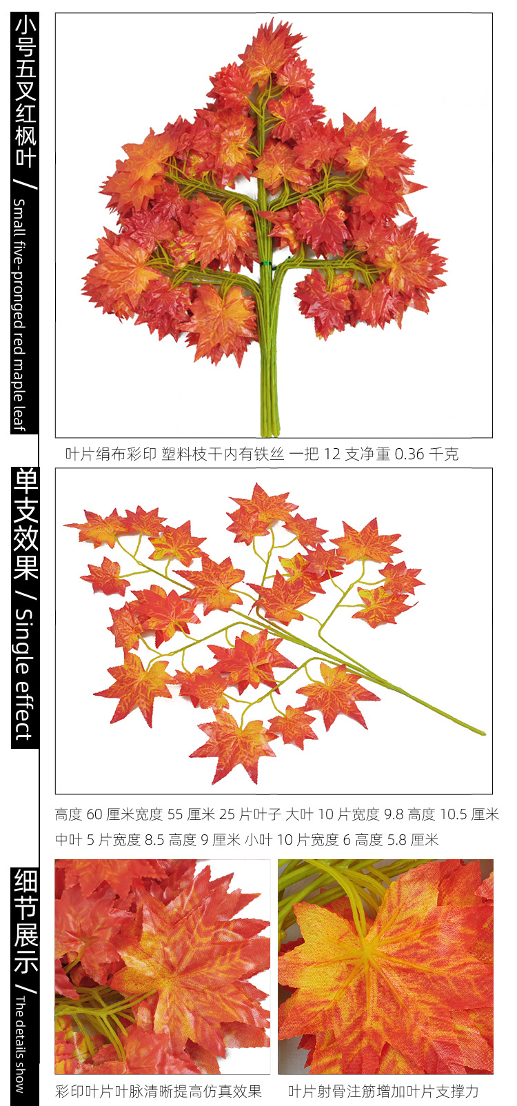 Hoja de arce rojo artificial Banyan Branch hojas paisajismo jardín decoración mango falso hojas de ginkgo hojas artificiales ramas