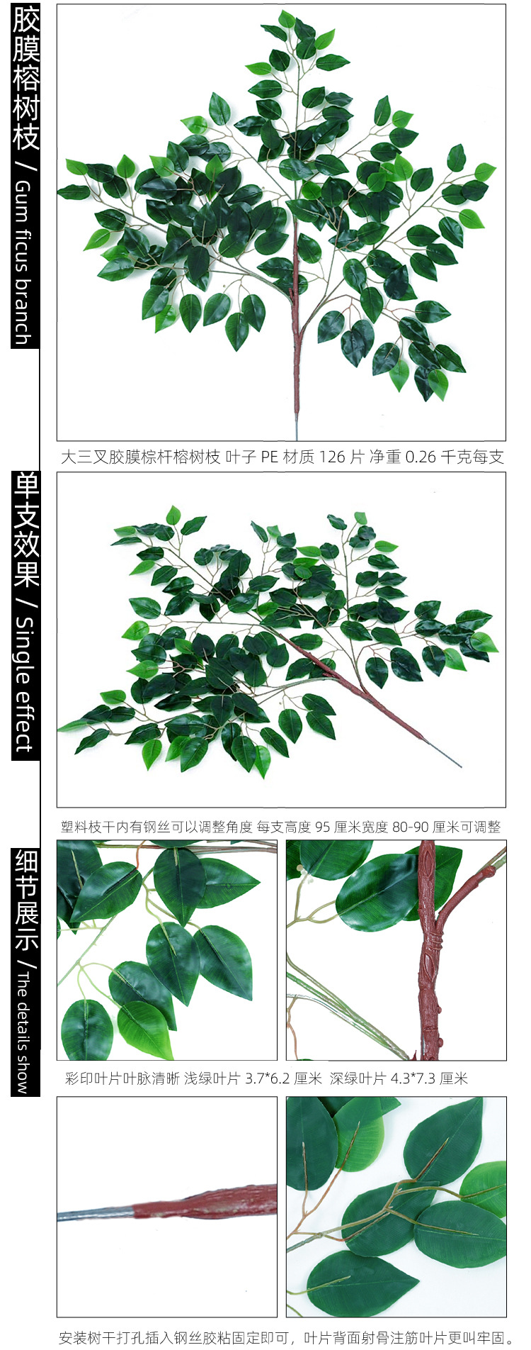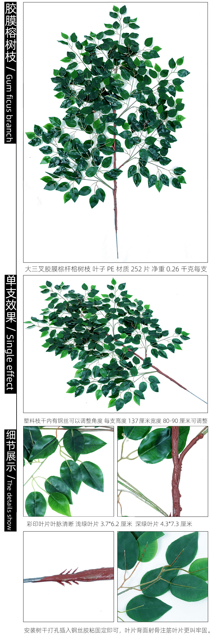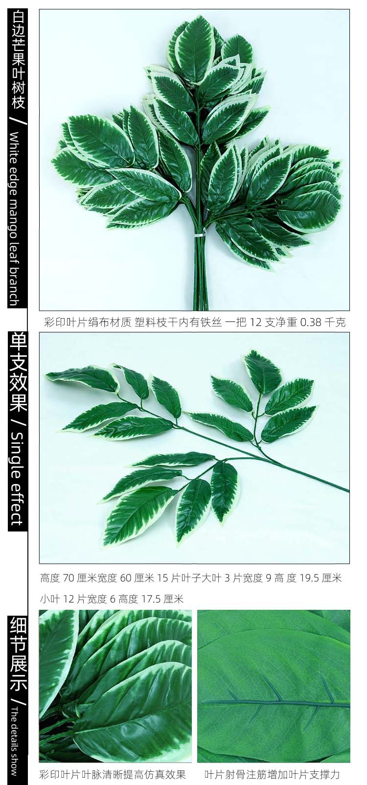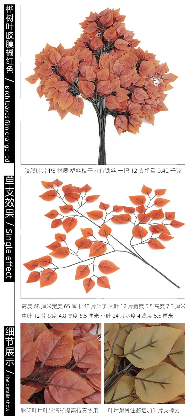 Hoja de arce rojo artificial Banyan Branch hojas paisajismo jardín decoración mango falso hojas de ginkgo hojas artificiales ramas