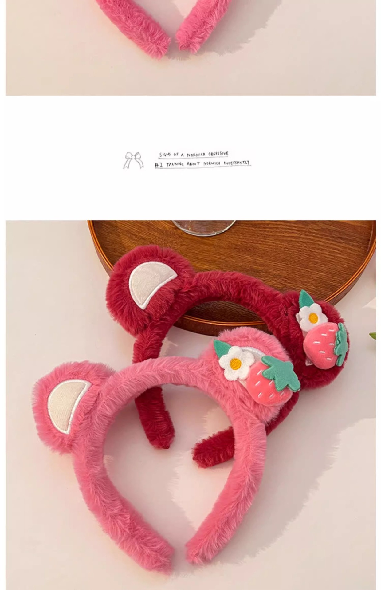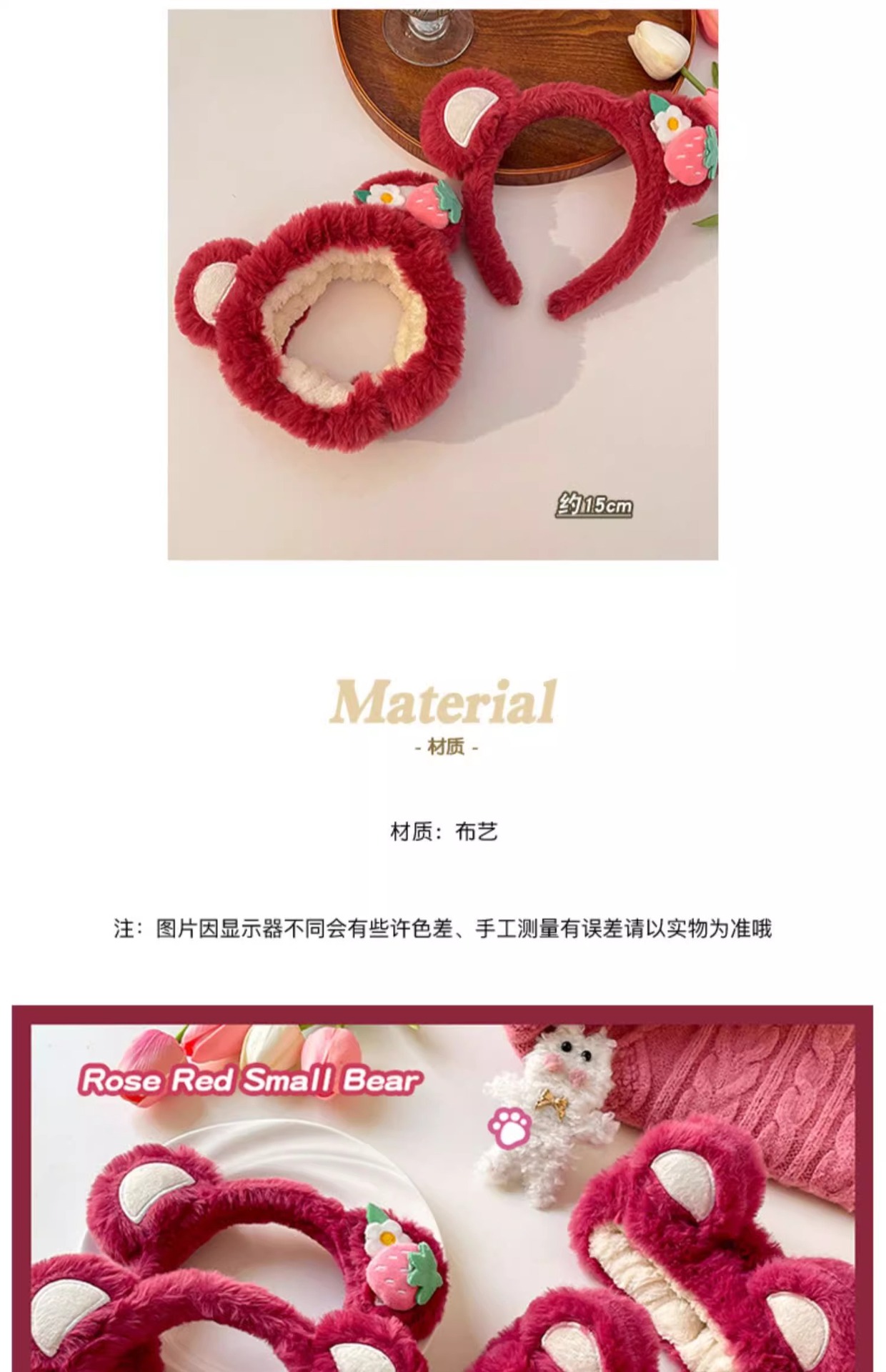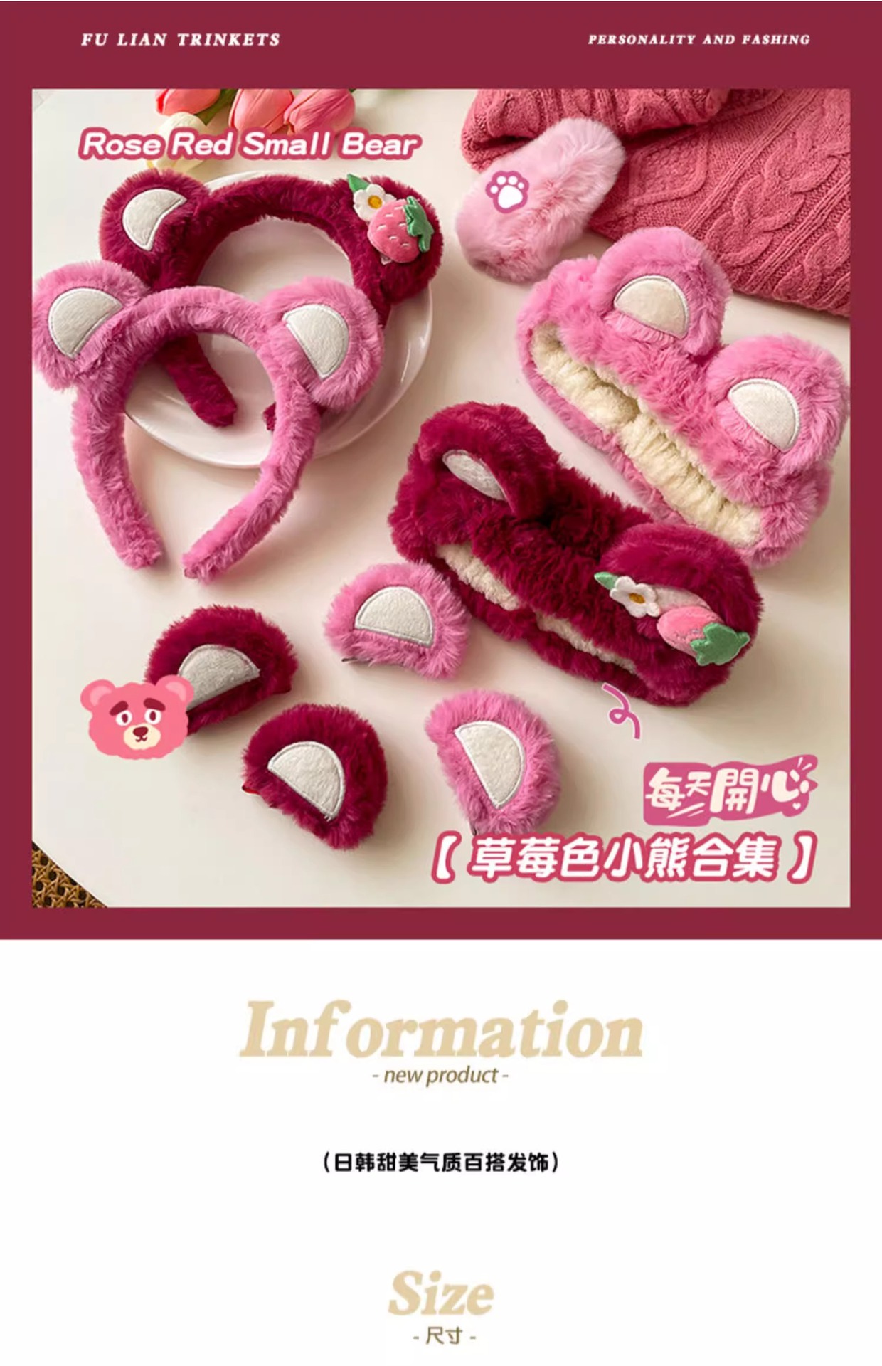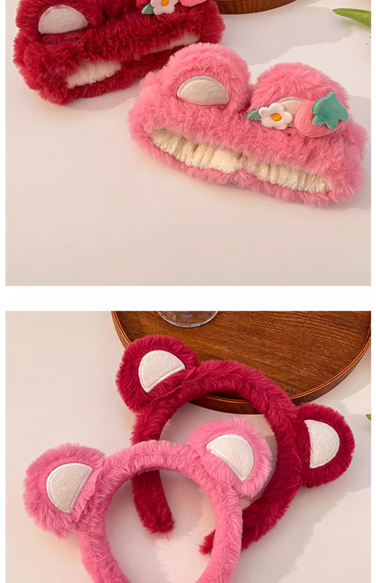 Linda caricatura fresa oso lavado de cara diadema mujer 2025 nueva diadema de presión horquilla antideslizante diadema