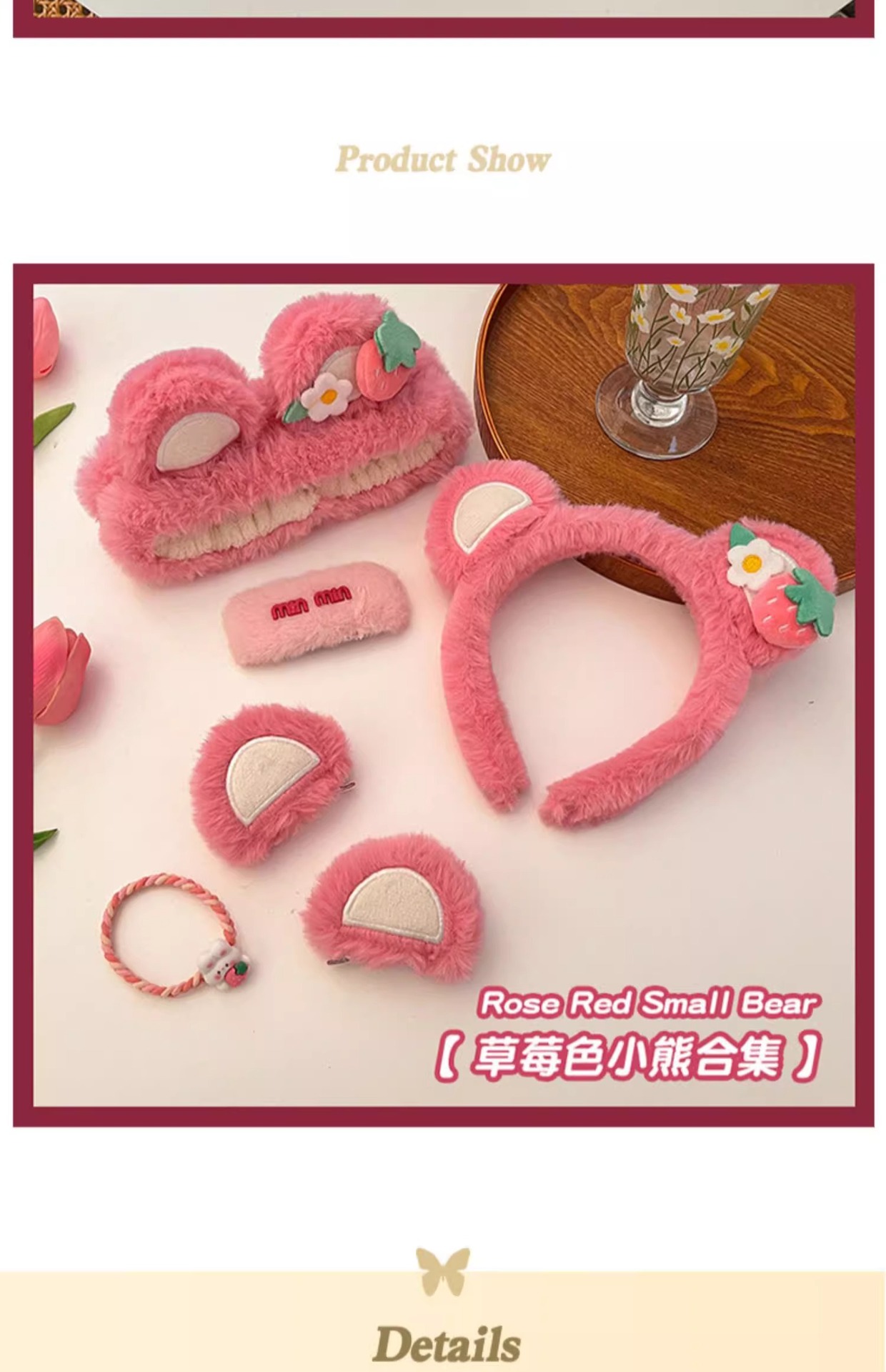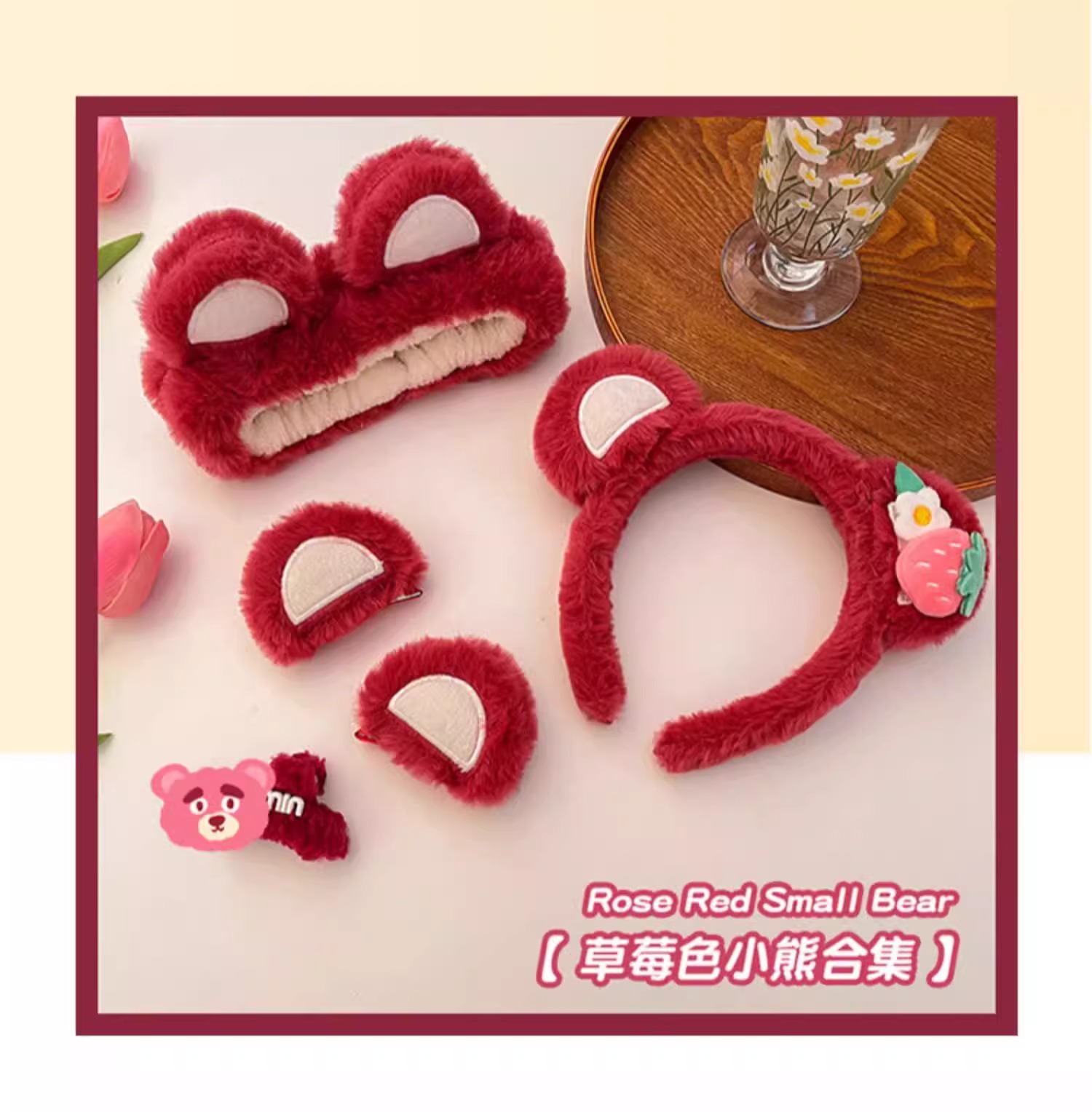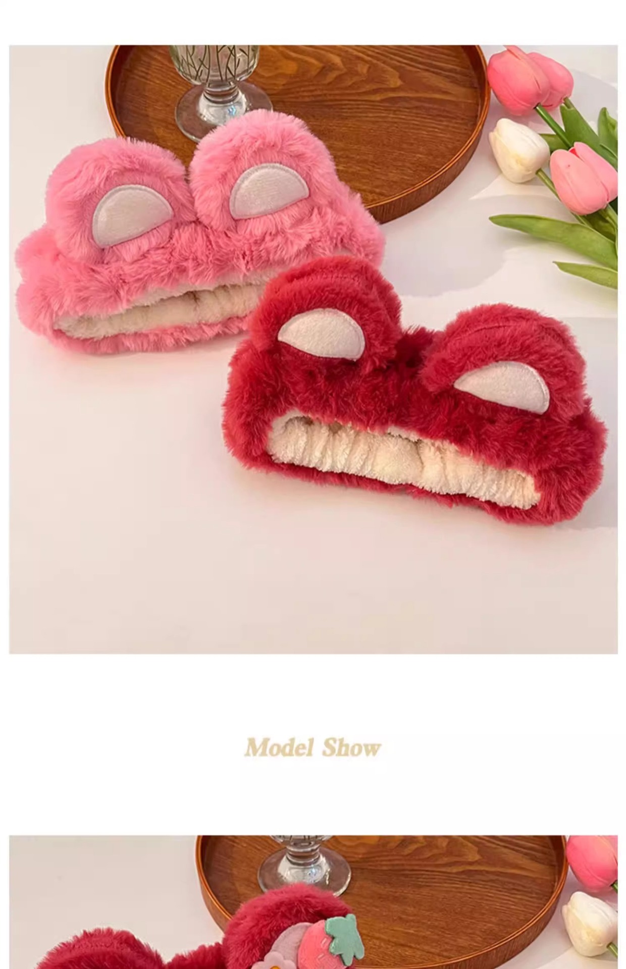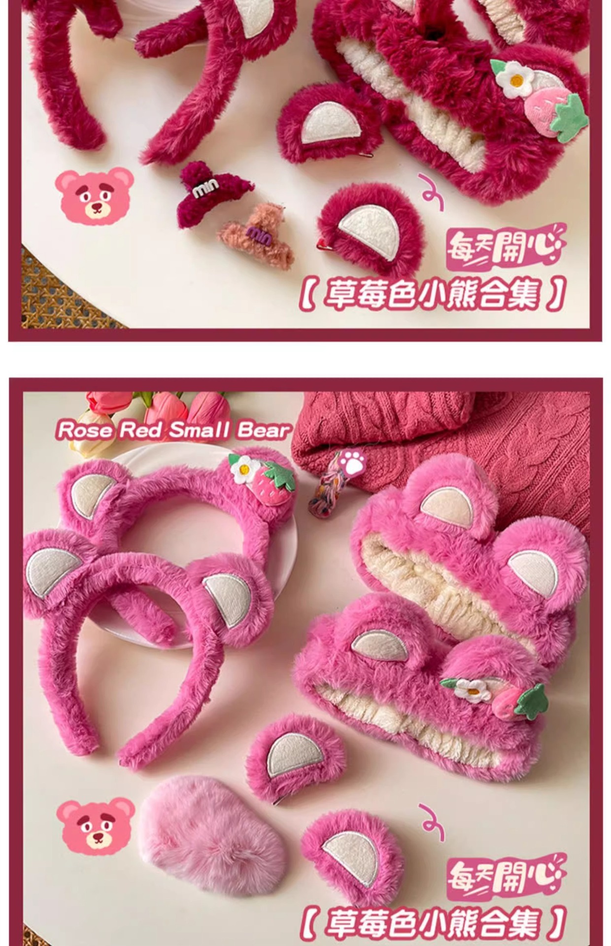 Linda caricatura fresa oso lavado de cara diadema mujer 2025 nueva diadema de presión horquilla antideslizante diadema