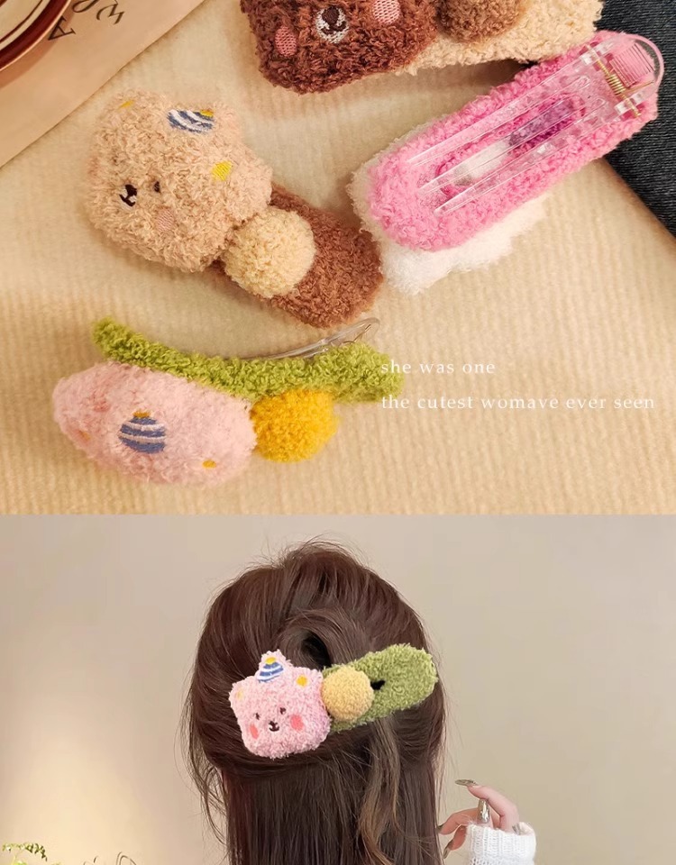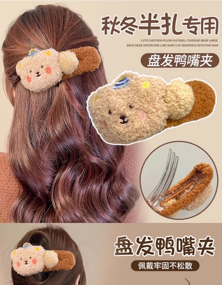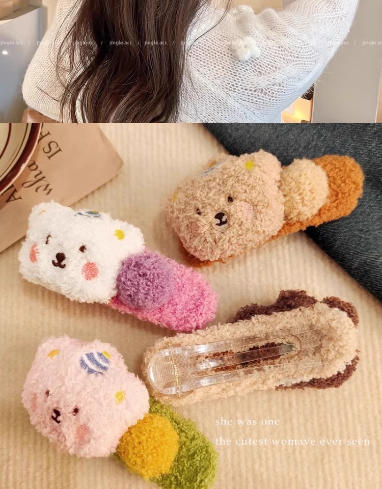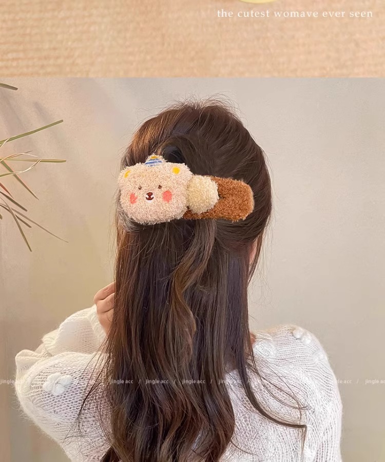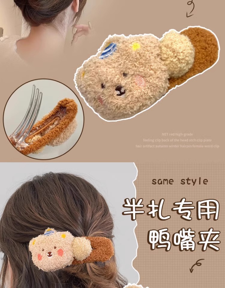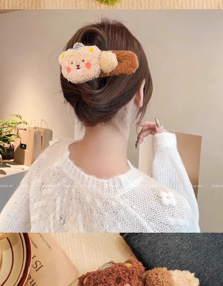 Pinzas para el pelo con forma de moño de felpa para otoño e invierno para mujer, pinzas versátiles tipo pico de pato para cabello grueso, lindas horquillas con forma de oso, accesorios para el cabello.