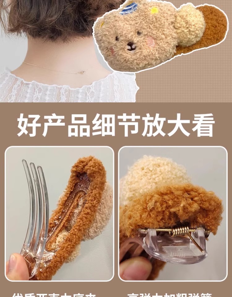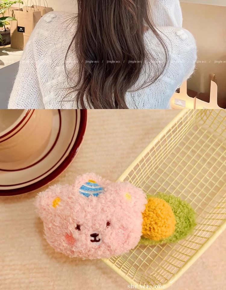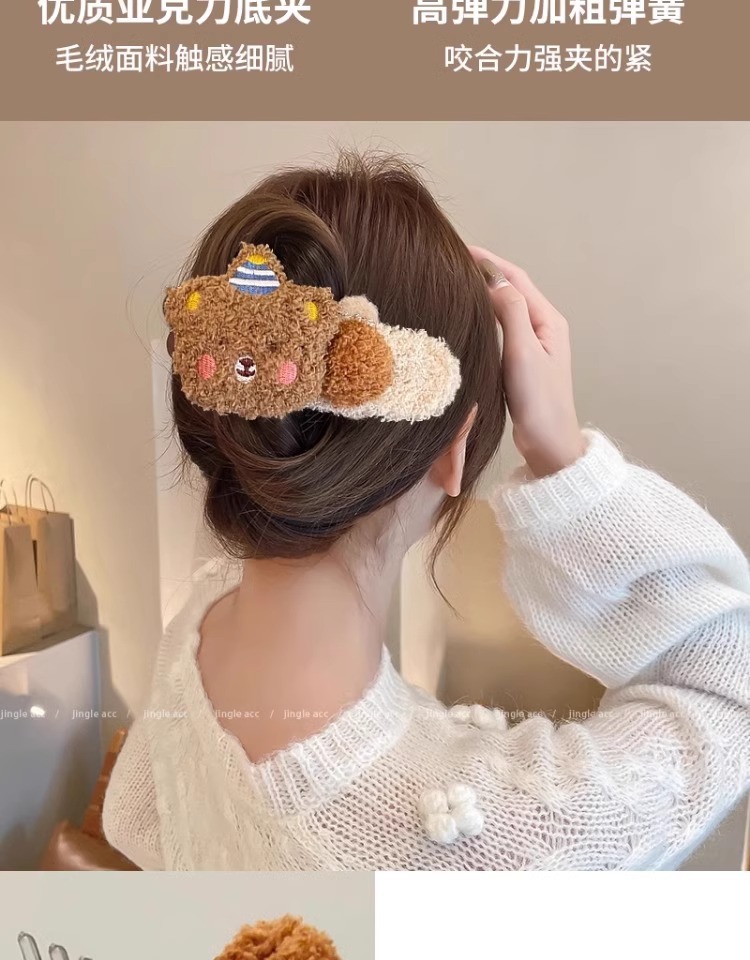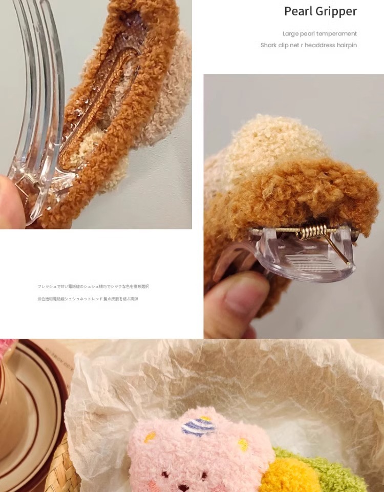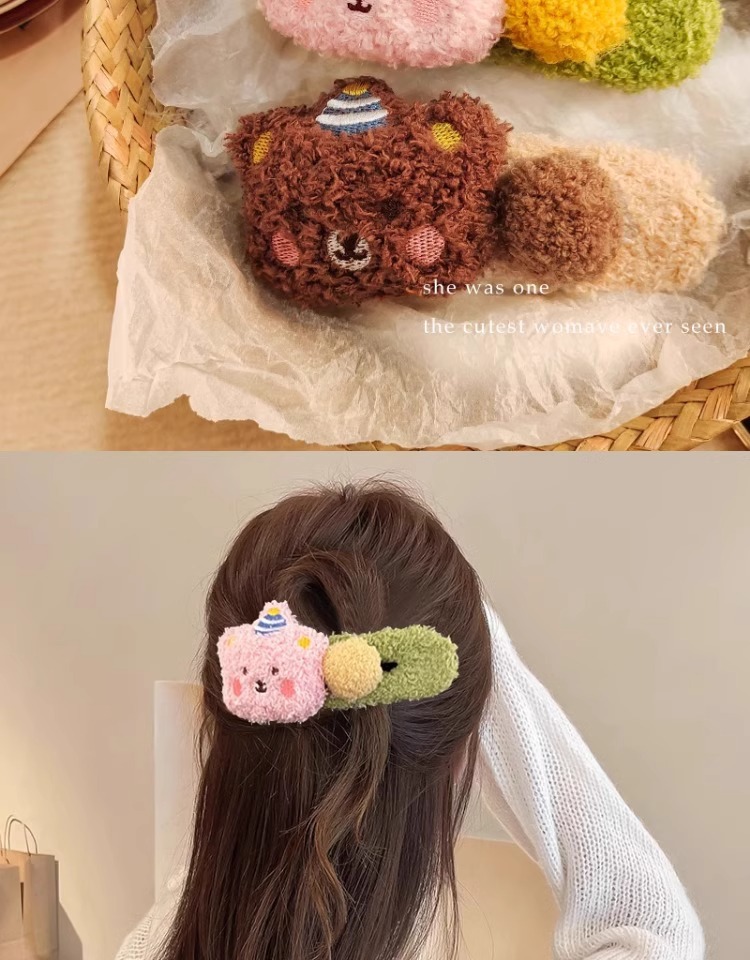 Pinzas para el pelo con forma de moño de felpa para otoño e invierno para mujer, pinzas versátiles tipo pico de pato para cabello grueso, lindas horquillas con forma de oso, accesorios para el cabello.