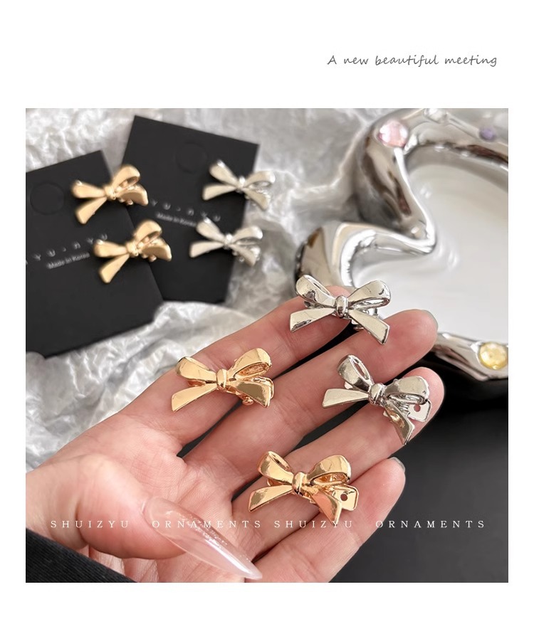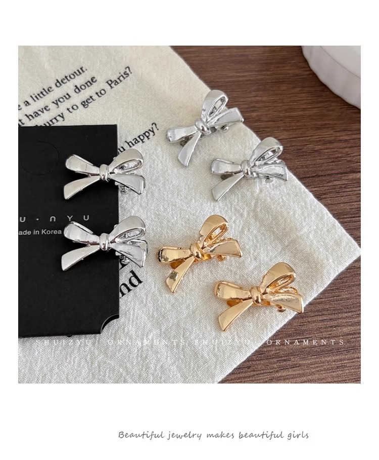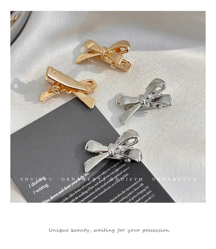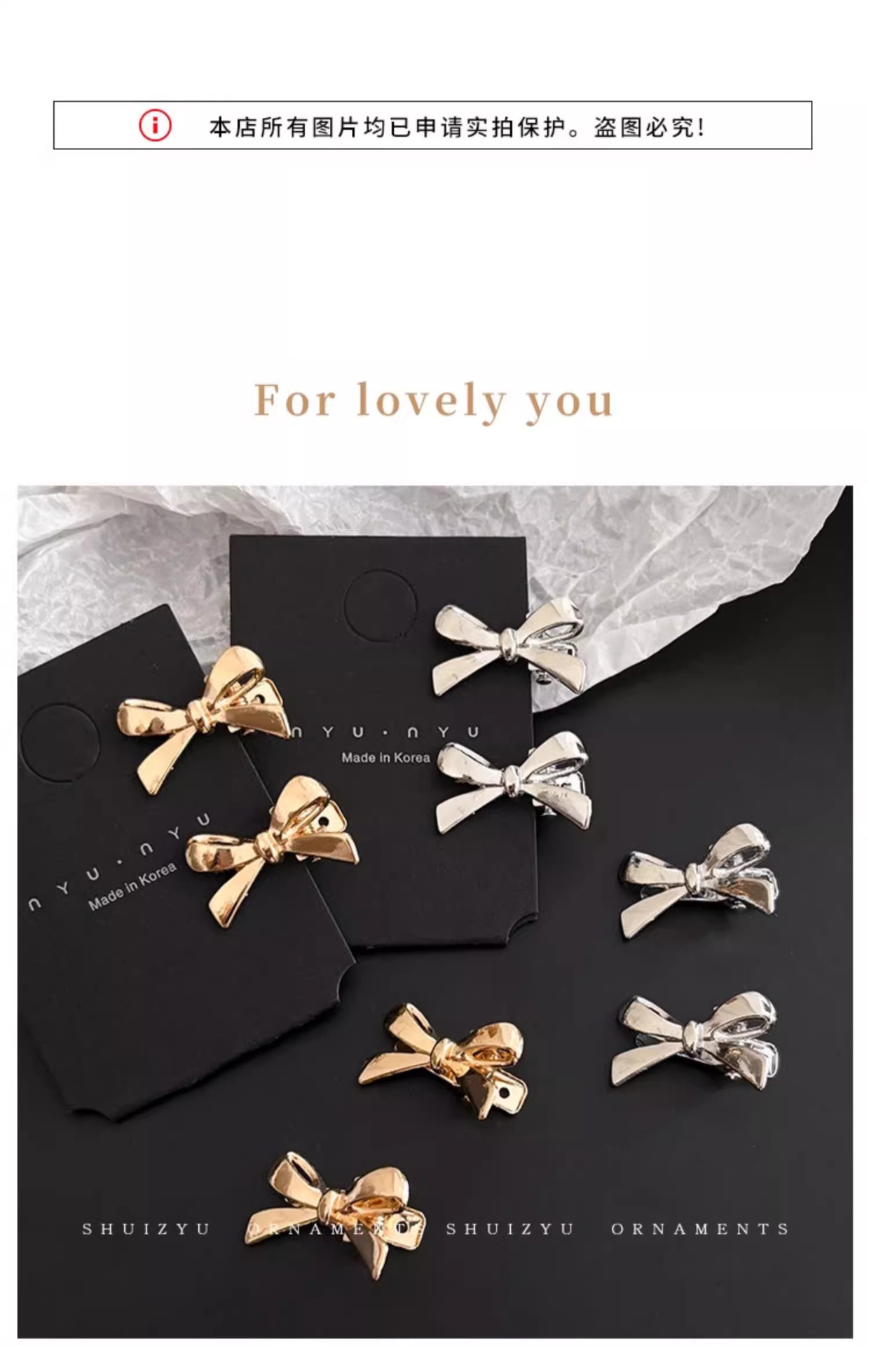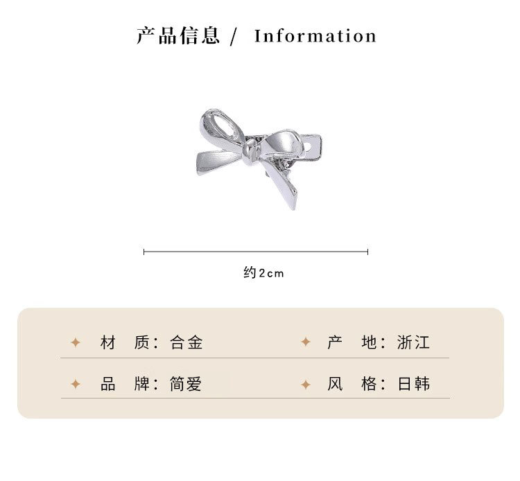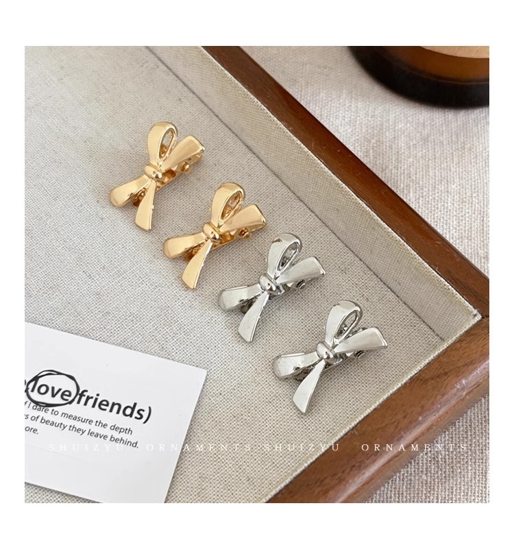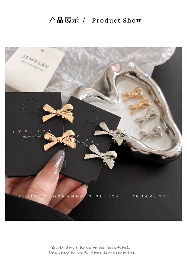 Horquilla de lazo de metal plateado, flequillo lateral femenino, clip pequeño, dulce chica fresca, clip de una palabra, horquilla de cabello roto, tocado