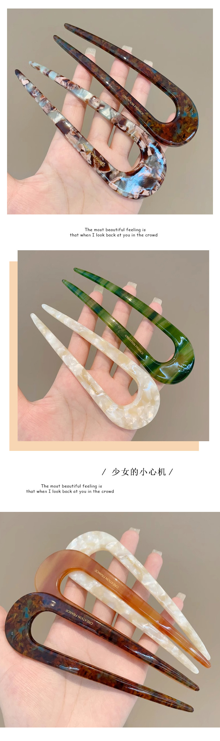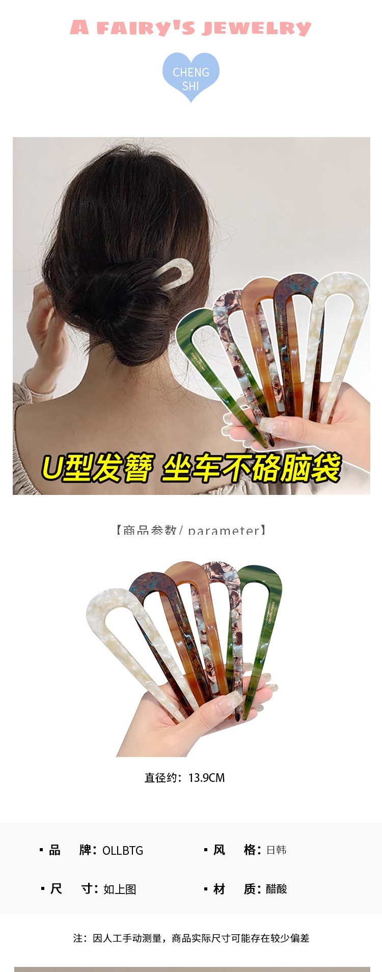 Horquilla en forma de U de ácido acético nuevo artefacto de cabeza de bola china para mujer, temperamento de alta calidad, tocado de horquilla en la parte posterior de la cabeza