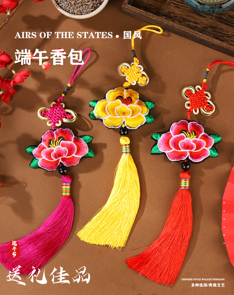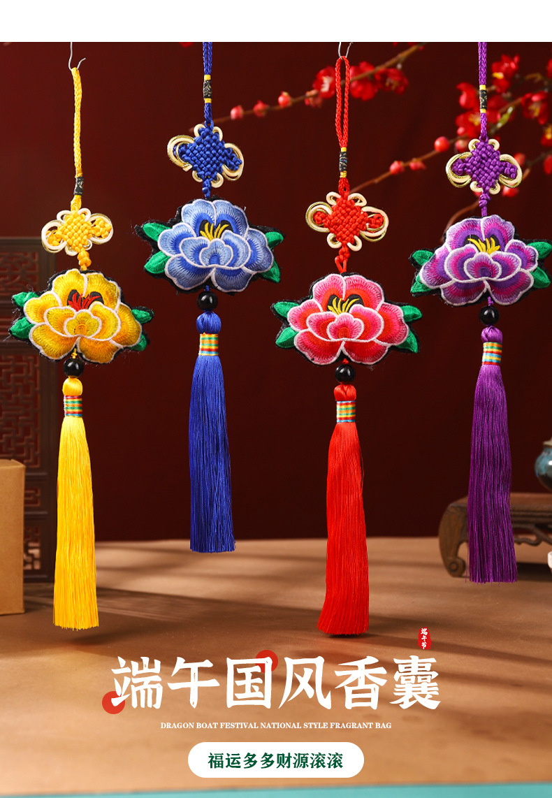 Bolsita para Dragon Boat Festival Bordado Lotus Hanfu Bolsita para bordar Cintura para Dragon Boat Festival Bolsita para bolsa de loto Colgante para coche