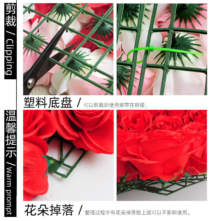 Flor artificial pared Fondo pared flor artificial Rosa cabeza plástico flor decoración boda seda flor arco Studio imagen pared