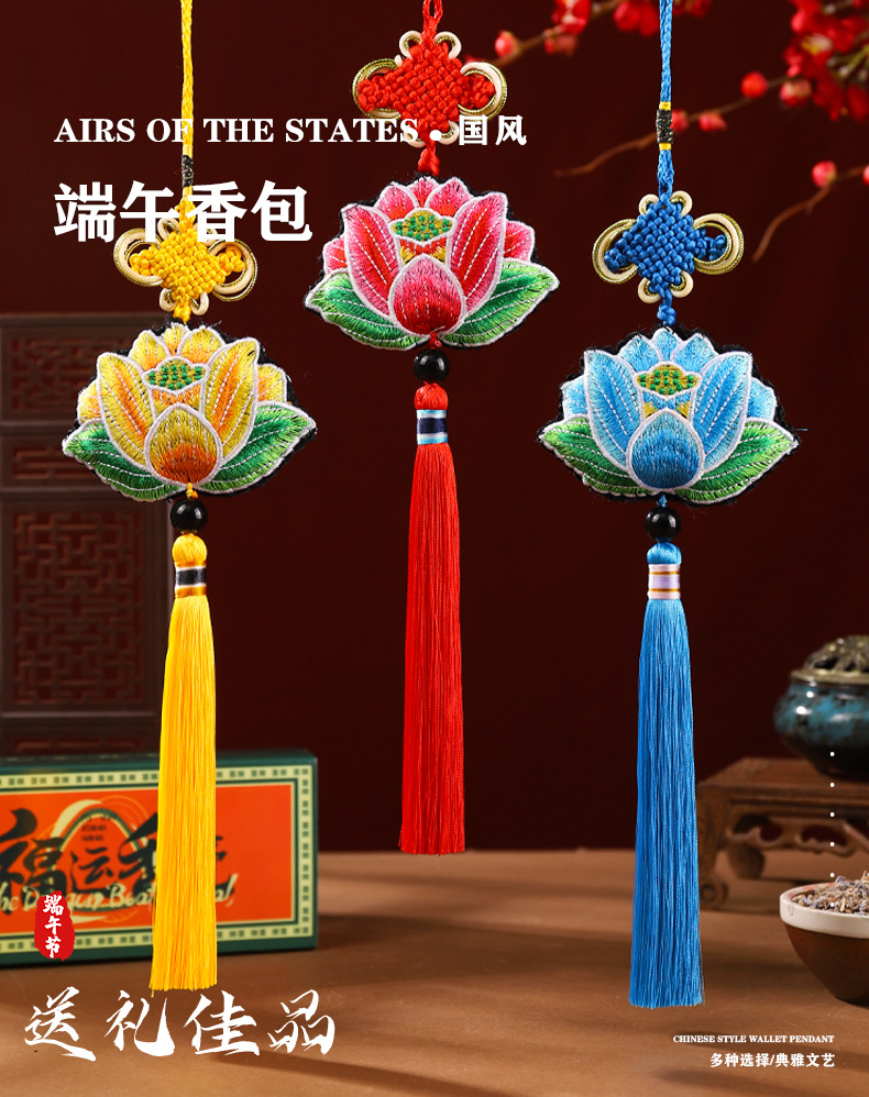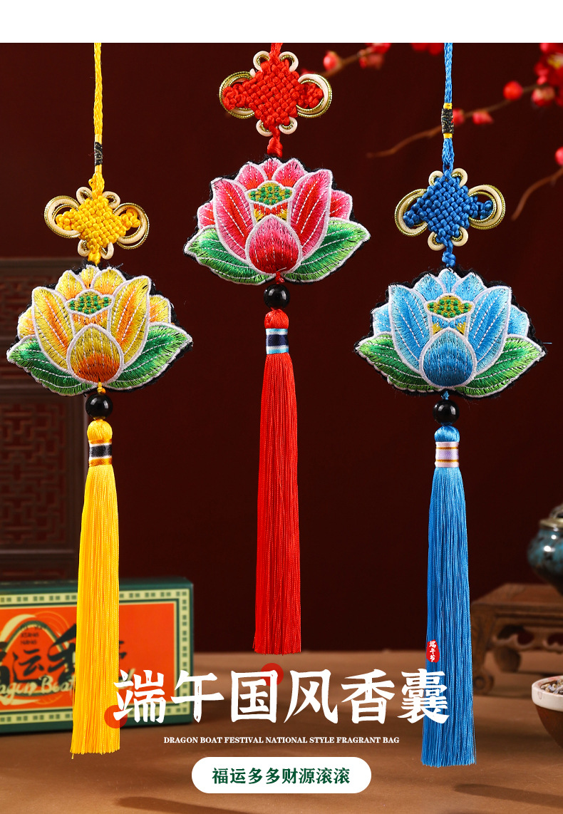 Dragon Boat Festival Bolsita de ajenjo Bolso de bendición de estilo antiguo Talismán de seguridad portátil Bolso de borla de brocado clásico Adorno de coche