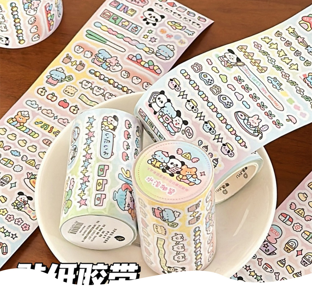 Nueva cinta de película de corte de dibujos animados, sueño claro, lenguaje cansado, encaje pequeño, lindo y simple, material de decoración de cuentas, paquete de pegatinas al por mayor