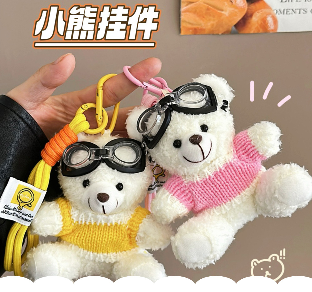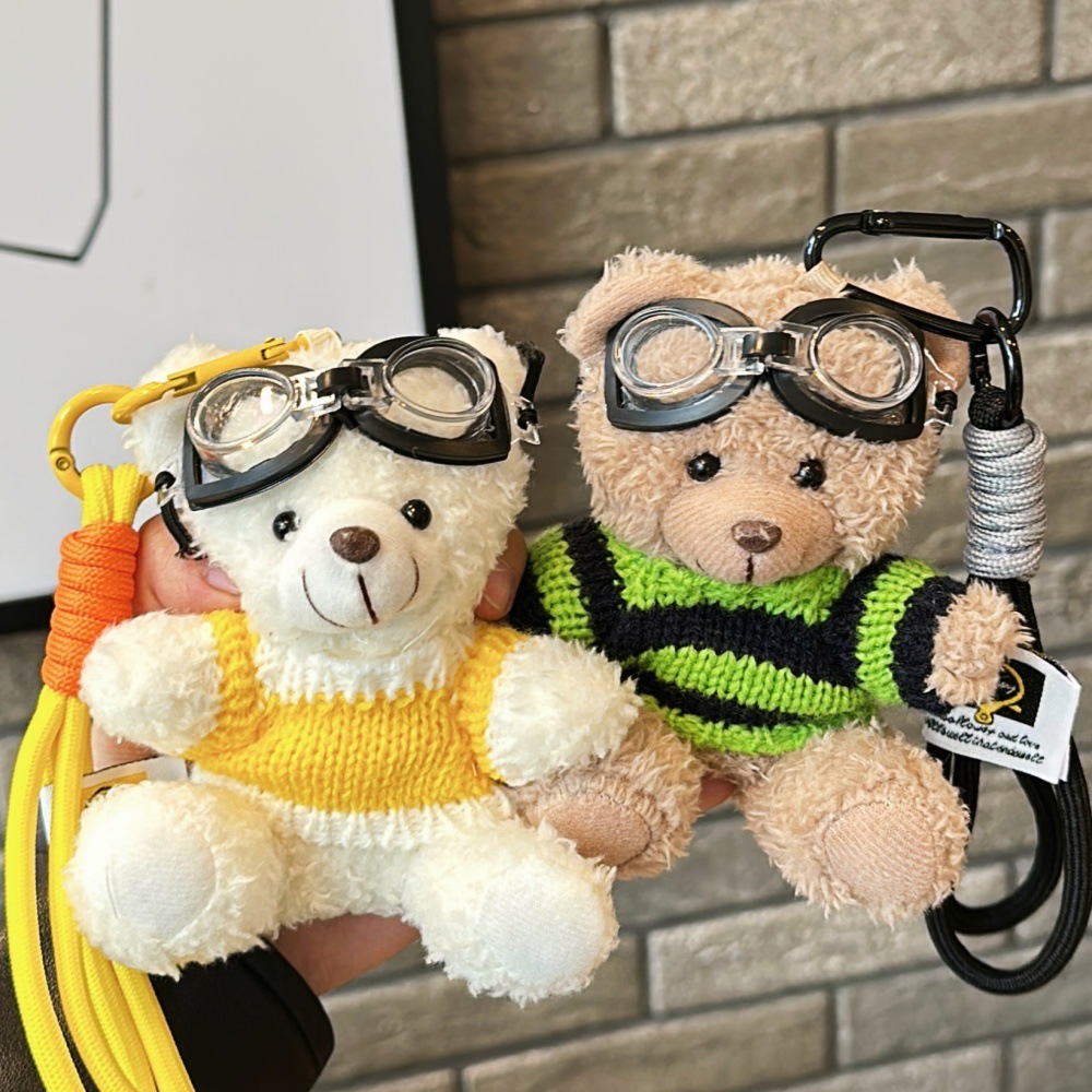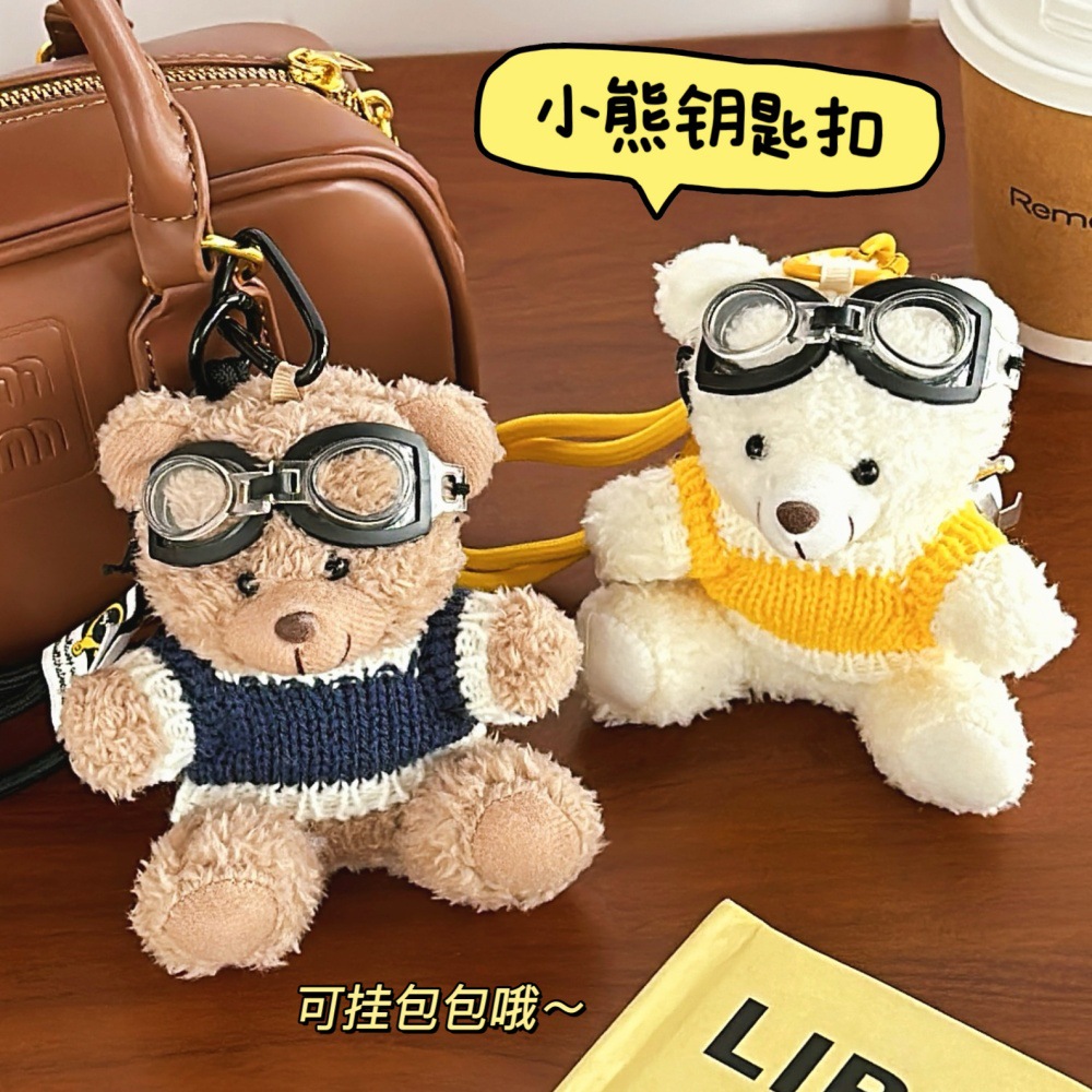 Nuevo piloto suéter oso muñeca colgante niña corazón llavero colgante decoración de coche muñeca pequeño regalo