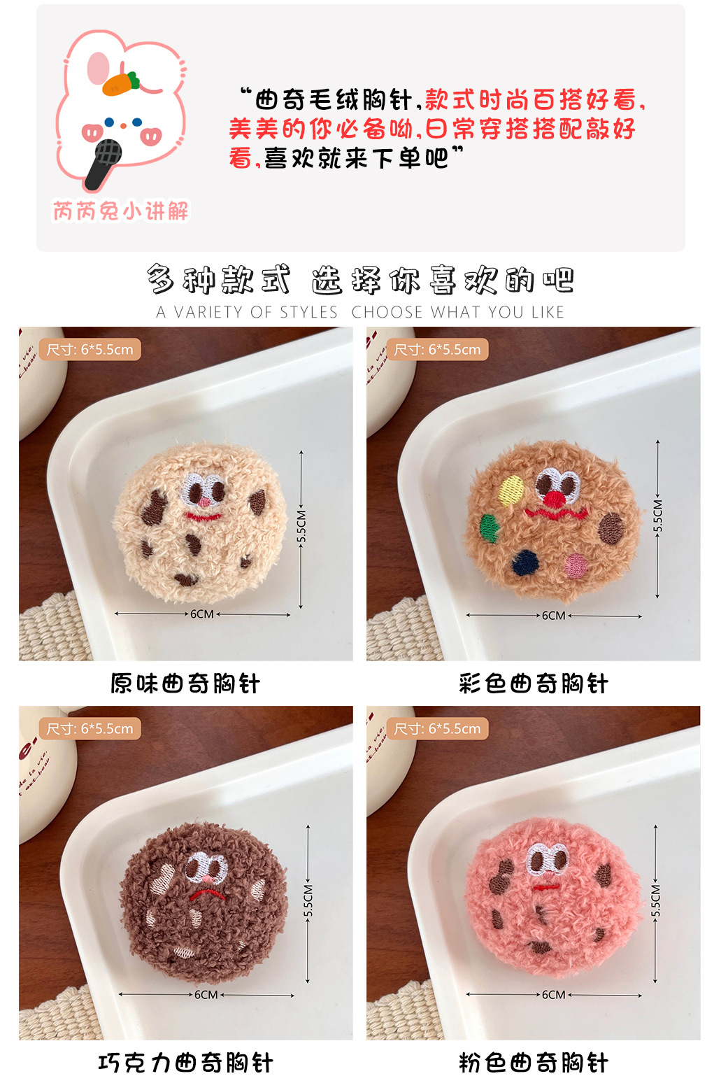 | Color | 1 # broche original de la galleta,2 # colorido broche de la galleta,3 # broche de galleta rosa,4 # broche de galleta de chocolate,5 # broche de galletas combinación 1,6 # galleta broche combinación 2,3 # Big Eye Cookie broche (Grande),1 # broche de la rana de felpa,2 # felpa broche de pollo amarillo,3 # felpa broche de oso marrón,4 # broche de peluche Panda,5 # broche de conejo blanco felpa,6 # de peluche de conejo de color rosa broche |