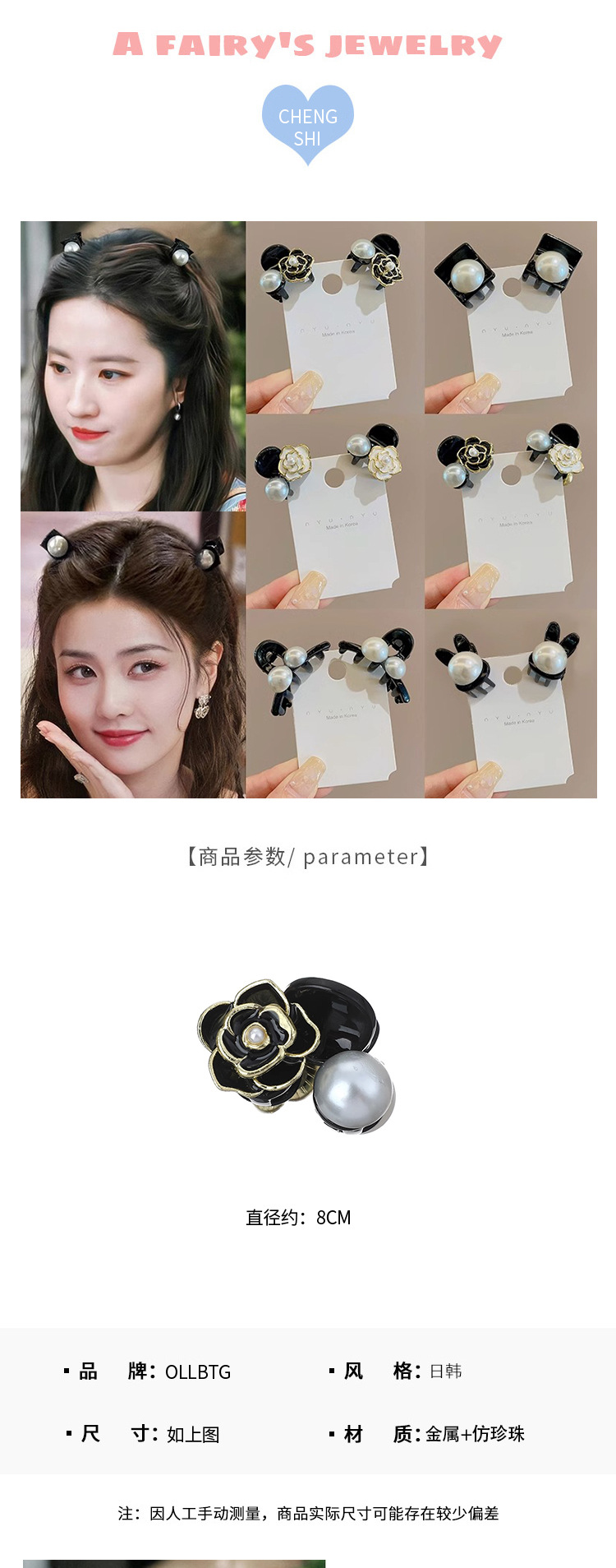 | Color | 1 # Clip de perlas de tamaño-aproximadamente 4.5cm.,2 # Perla Gema y clip-aproximadamente 3.8cm.,3 # Una perla es pequeña y la palabra es de 4,5 cm.,1 # plata.,2 # Oro.,2 # Conejo negro.,1 # Negro individual.,1 # Negro.,4 # vino tinto.,1 # flor negra perla.,2 # flor blanca perla. |