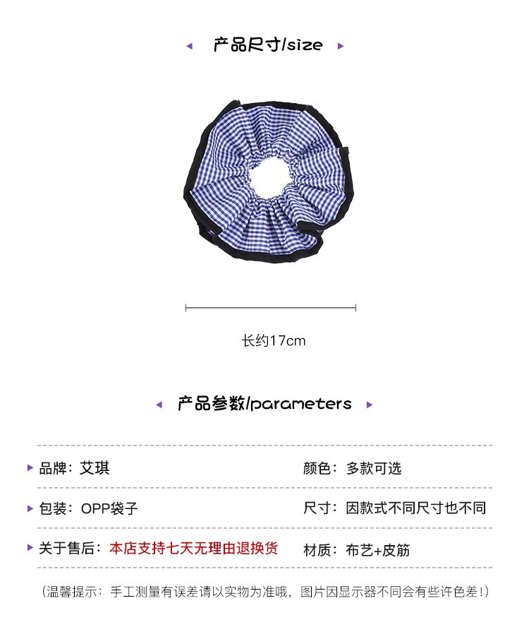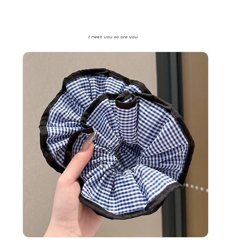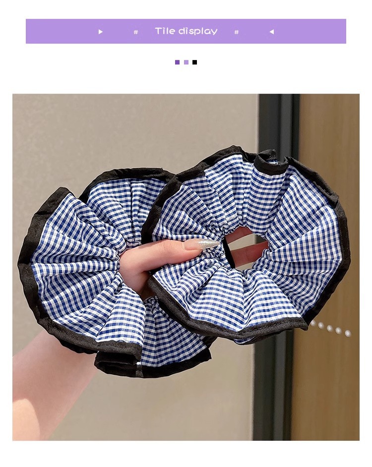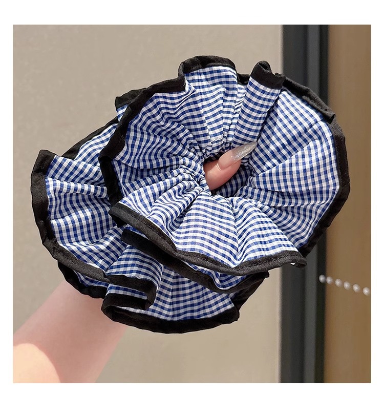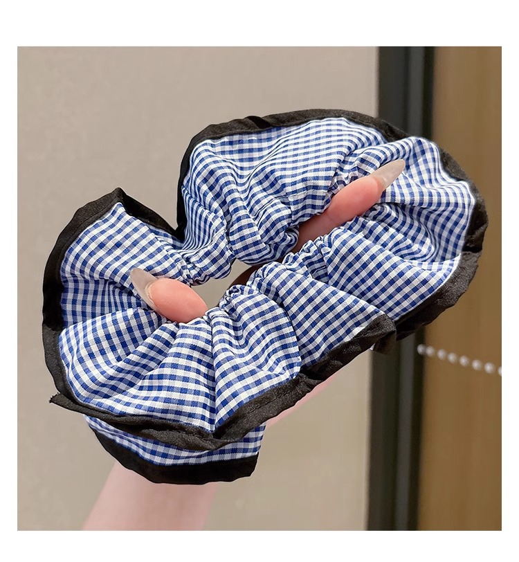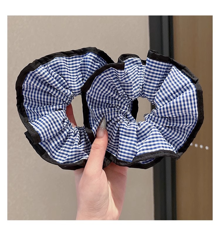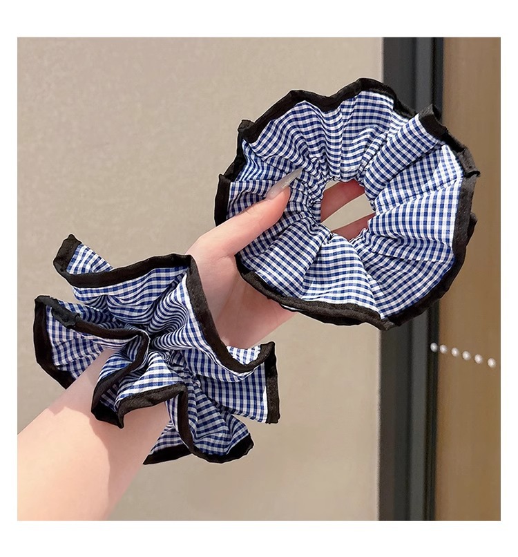 Tela de doble capa de lazo para el cabello de intestino grueso a cuadros azules, estilo coreano perezoso, lazo para el cabello retro, temperamento, tocado de goma