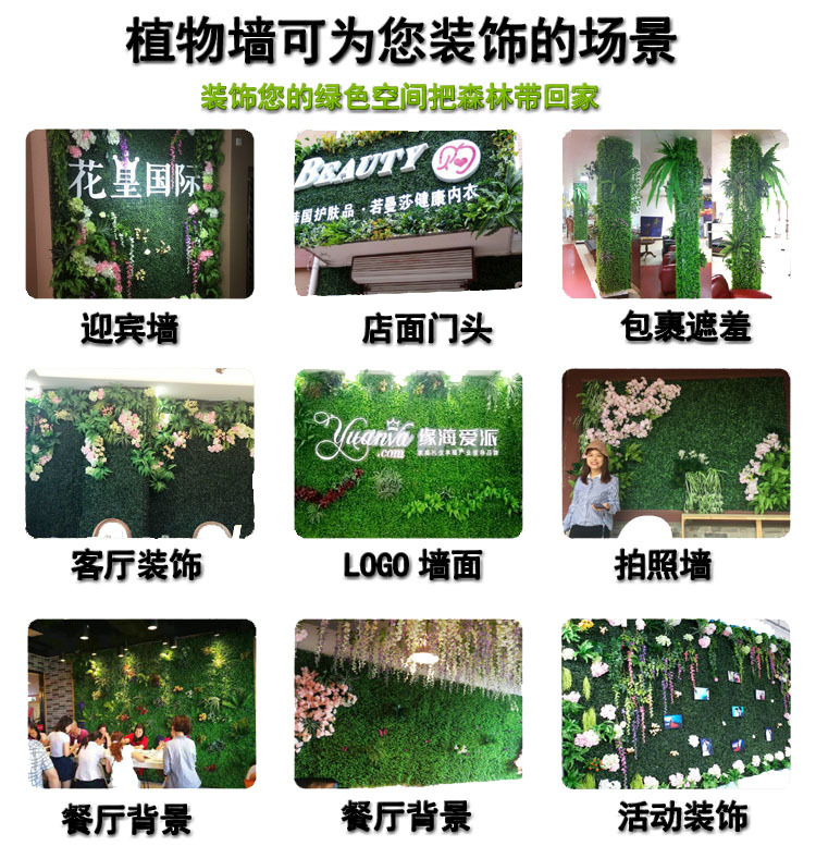 Pared de planta de simulación Pared de planta verde Pared de fondo Pared de plástico Cabeza de puerta Pared de césped de planta de simulación Pared de imagen de tienda de césped