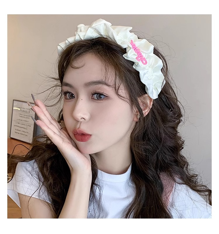 Internet celebridad elegante de ala ancha diadema plisada tocado lavado de cara de las mujeres horquilla avanzada banda de pelo sensible a la presión alta Paquete de pelo superior del cráneo