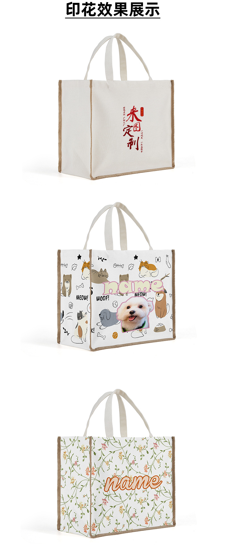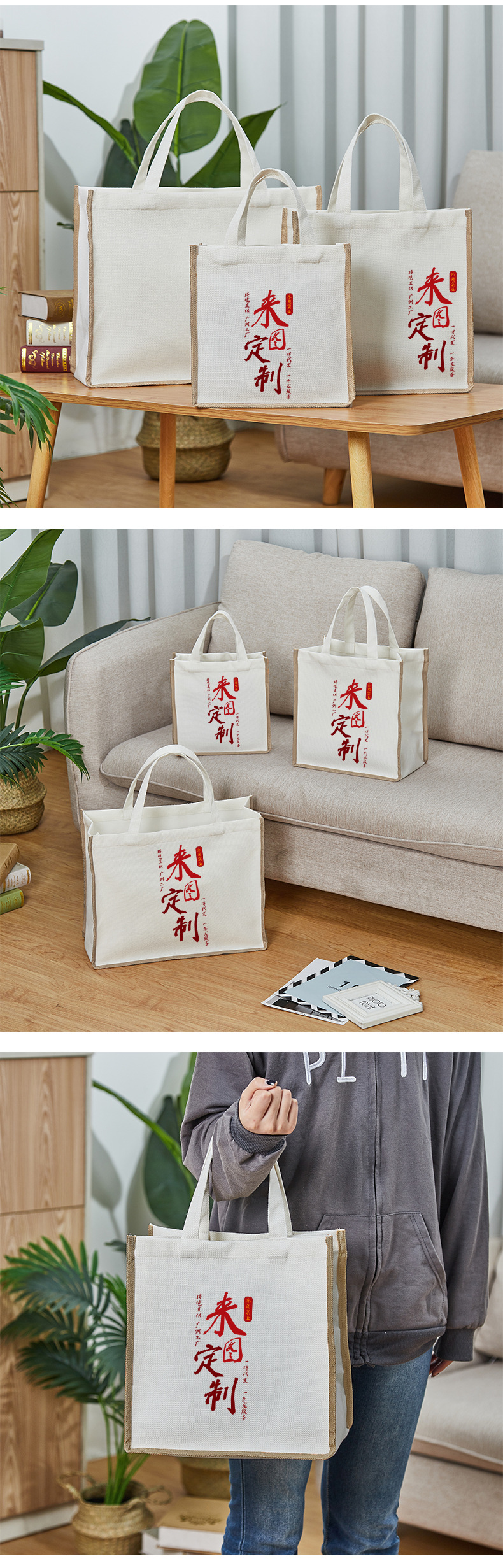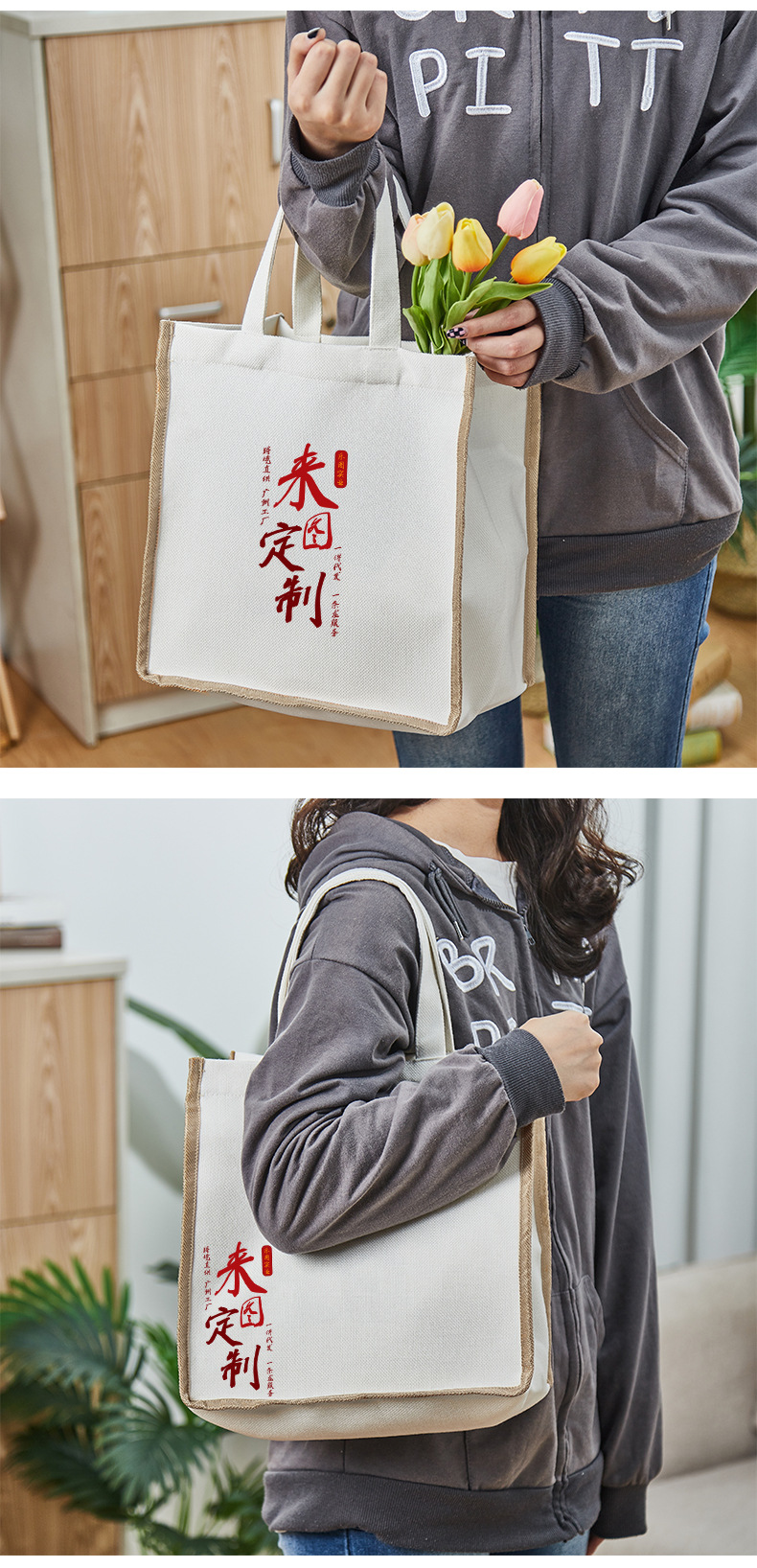 La imagen se puede hacer en tiendas físicas caja de regalo de alta gama bolso de tela bolsa de embalaje de algodón y lino bolsa de compras bolsa de hombro
