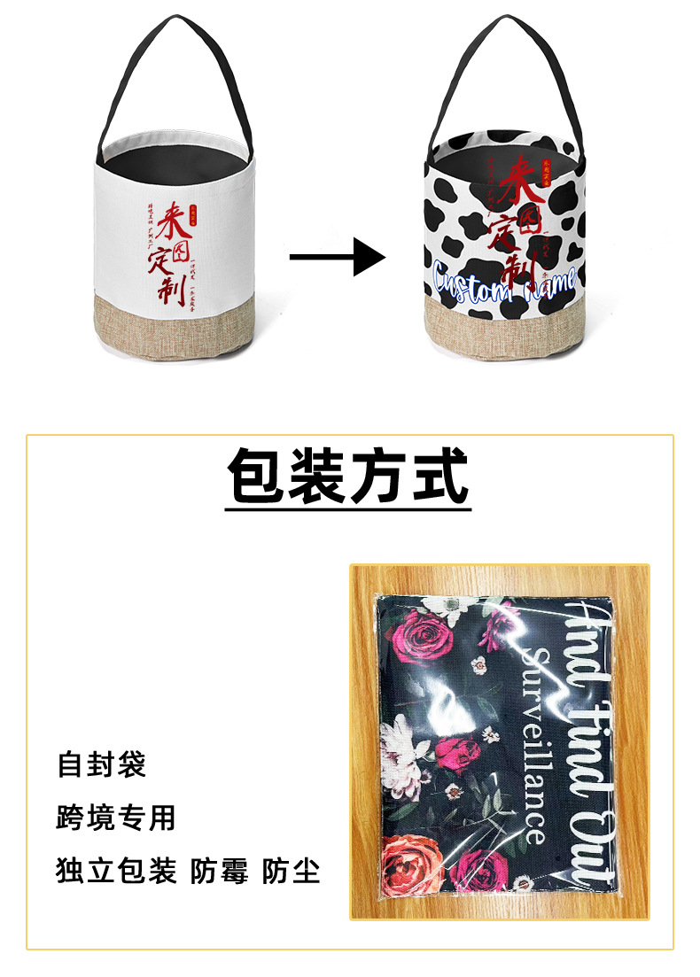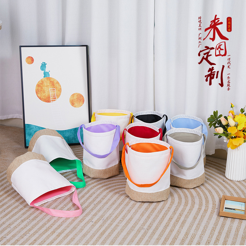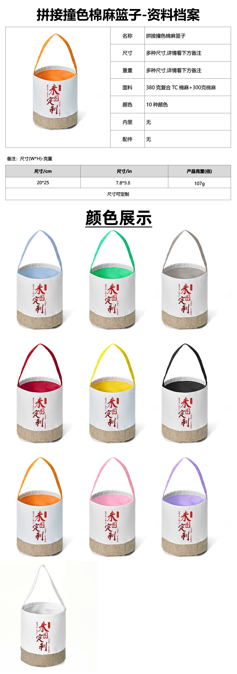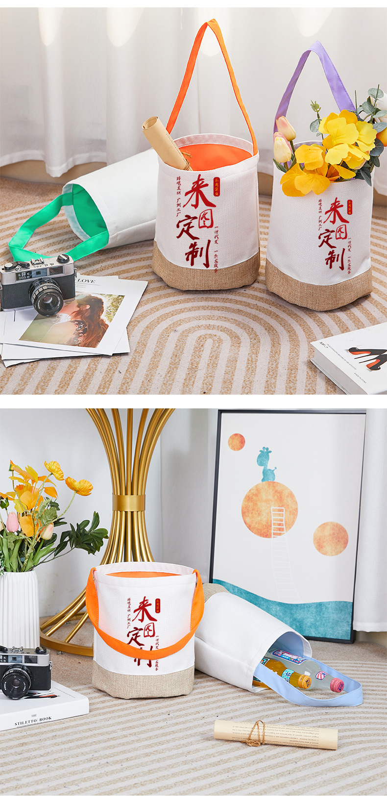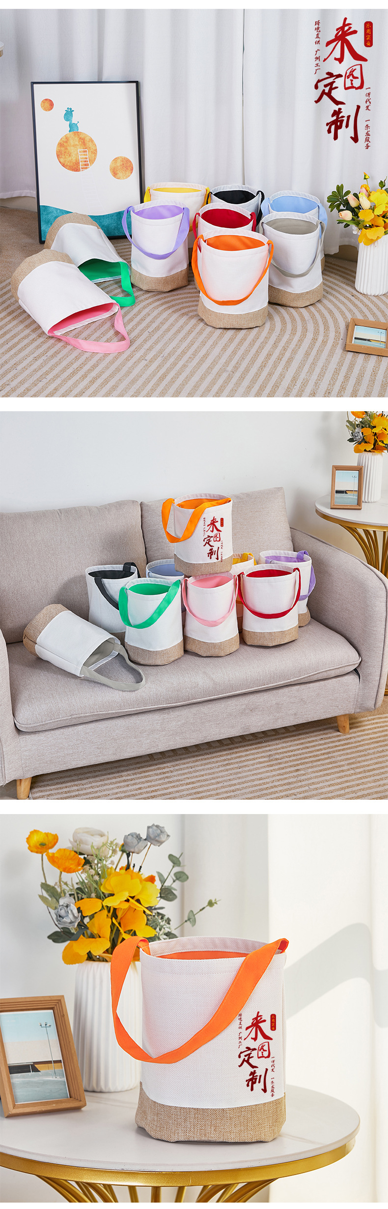 Bolsa de algodón y lino de colores contrastantes con empalme de cesta colorida, bolsa de regalo de Halloween de algodón y lino de 380g, se puede personalizar con imágenes xqds0189a