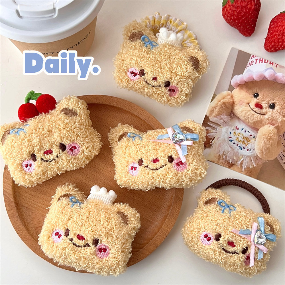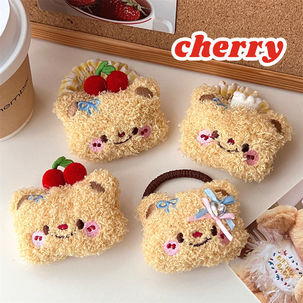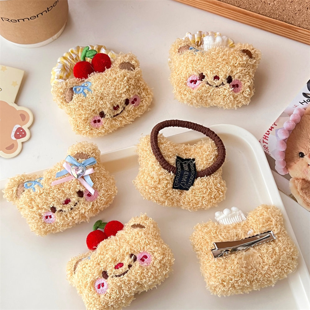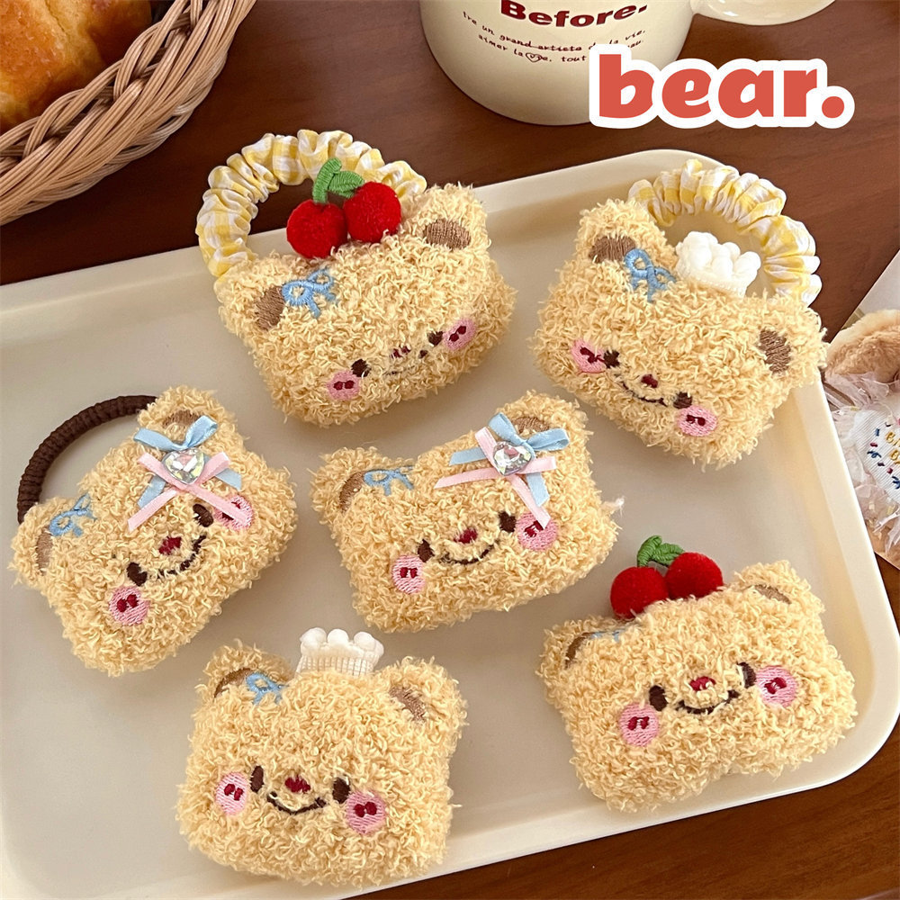 Lindo oso de dibujos animados peluche cuerda para el cabello horquilla niña todo fósforo cuerda de cabeza de cola de caballo de alta elasticidad clip de flequillo dulce