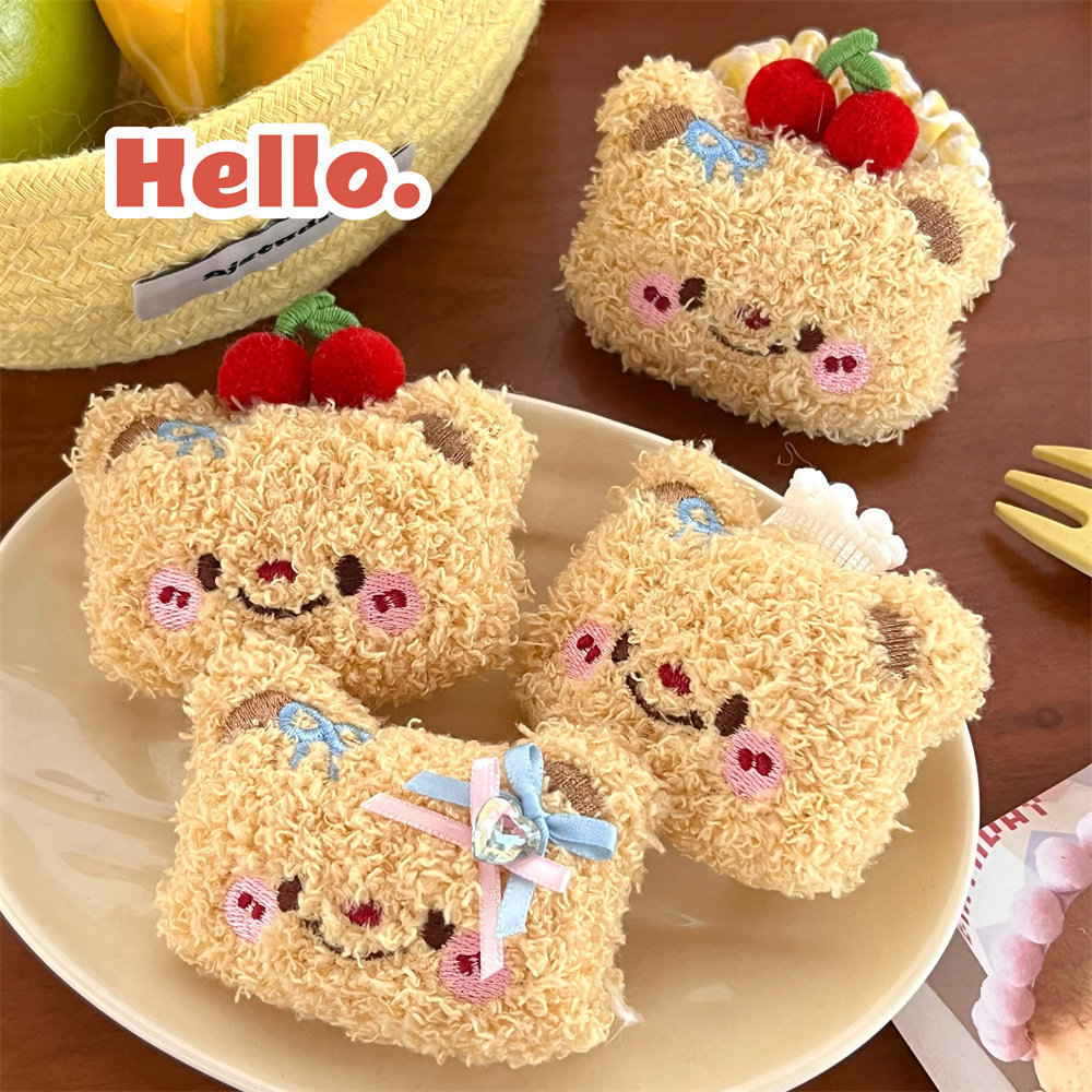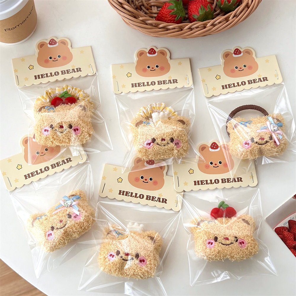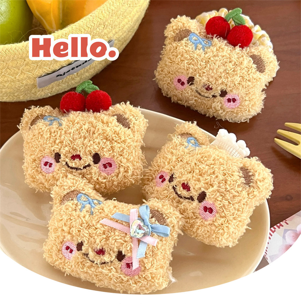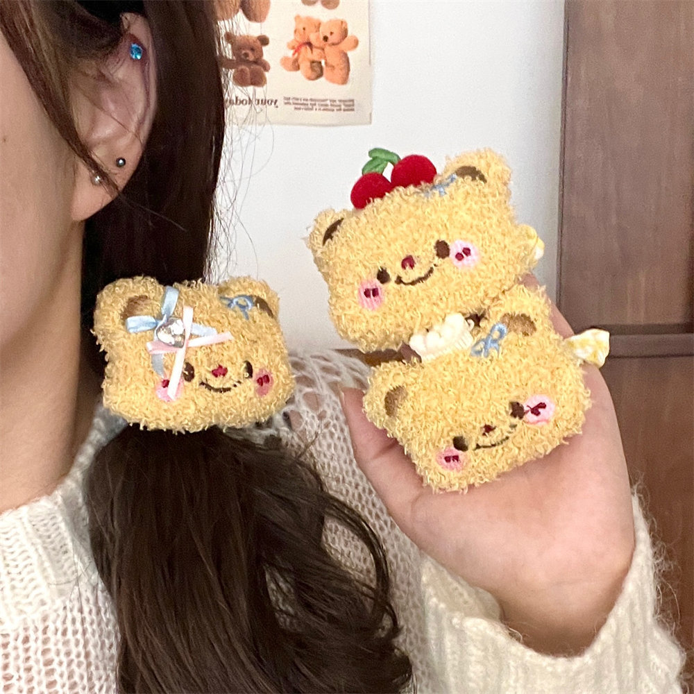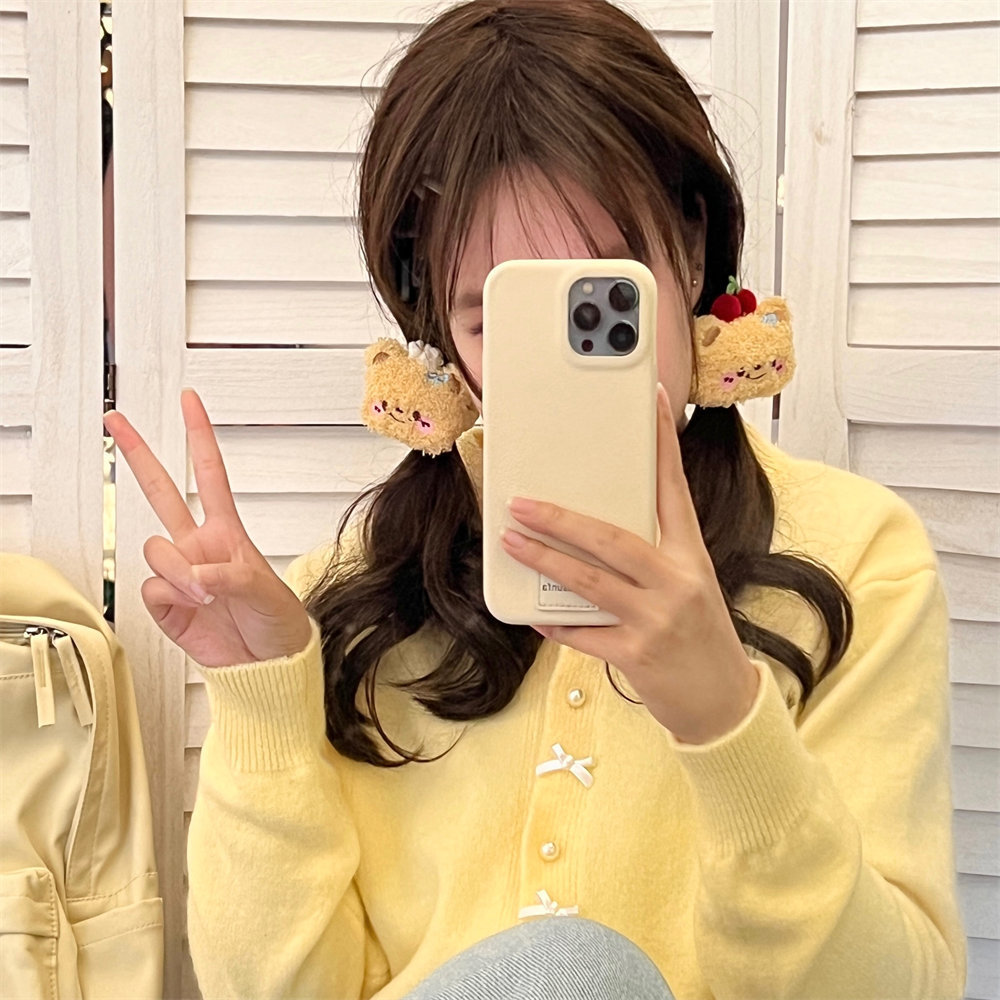 Lindo oso de dibujos animados peluche cuerda para el cabello horquilla niña todo fósforo cuerda de cabeza de cola de caballo de alta elasticidad clip de flequillo dulce