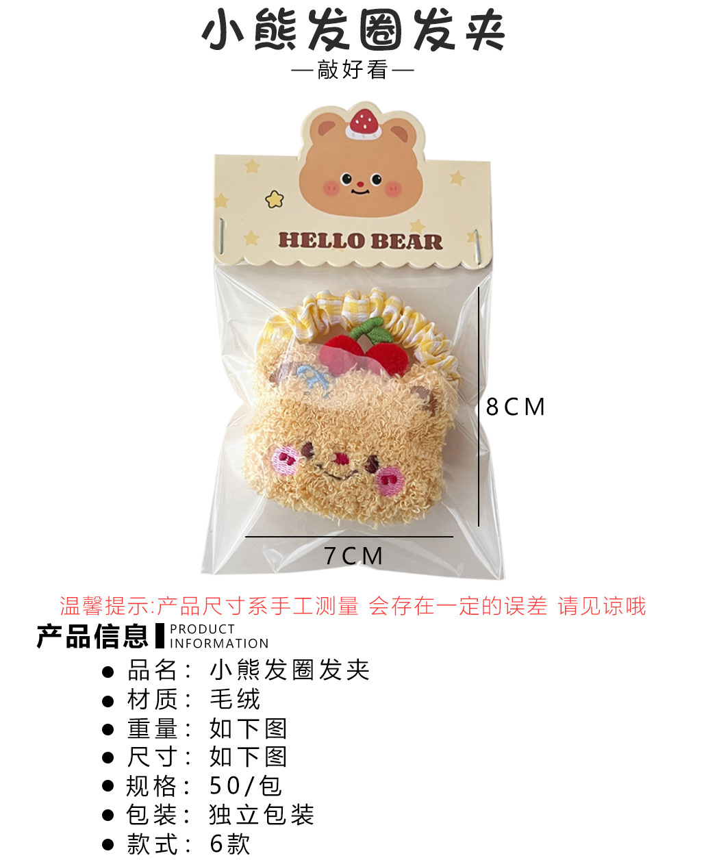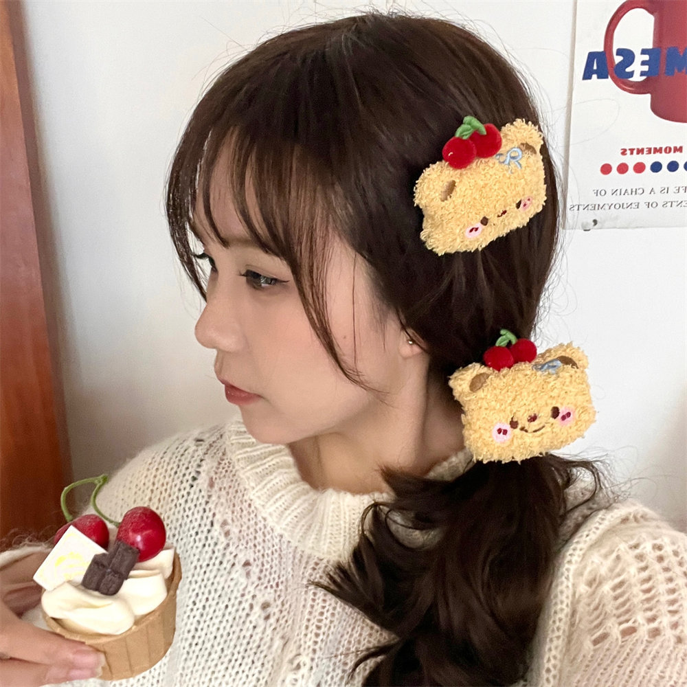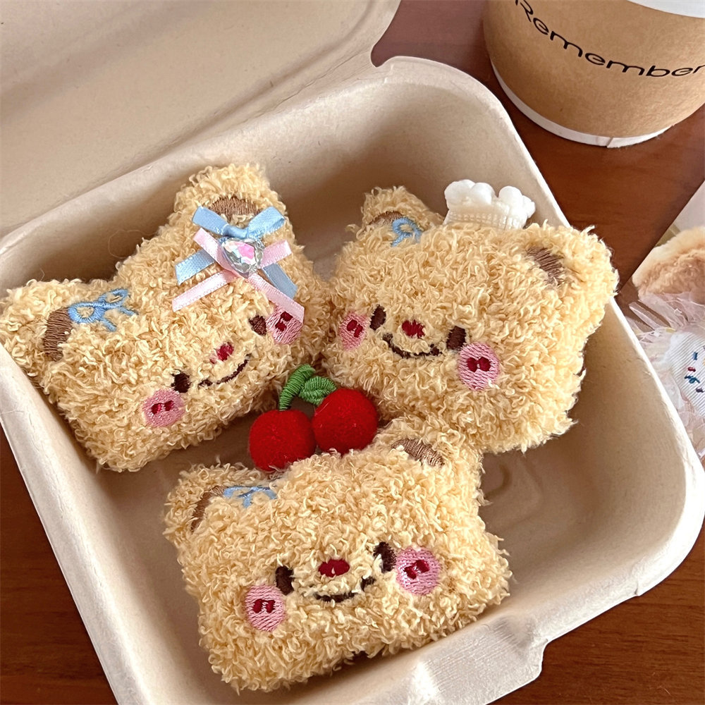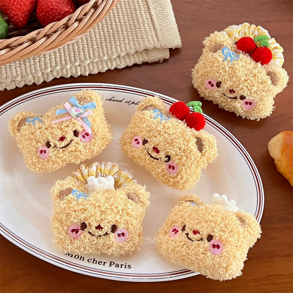 Lindo oso de dibujos animados peluche cuerda para el cabello horquilla niña todo fósforo cuerda de cabeza de cola de caballo de alta elasticidad clip de flequillo dulce