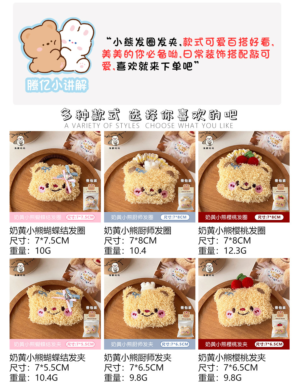 | Color | 1 #. Anillo para el cabello de cereza de oso amarillo lechoso,2 #. Cachorro de pelo de chef de oso lechoso,3 #. Anillo de pelo con lazo de oso amarillo lechoso,4 #. Horquilla de cereza de oso amarillo lechoso,5 #. Horquilla de chef de osito de crema,6 #. Horquilla de lazo de oso crema,1 #. Un par de lindos broches de oso amarillo lechoso,2 # Un par de lindos colgantes de oso amarillo lechoso,3 # Bufanda Bear-Broche,4 # bufanda colgante de oso amarillo lechoso,5 # Excursión Bear-Broche,6 # Colgante de oso amarillo lechoso de salida,1 # Lindo clip BB de oso amarillo lechoso,2 # Bolso bandolera de oso amarillo lechoso-clip BB,3 # Delantal Oso amarillo lechoso-clip BB |