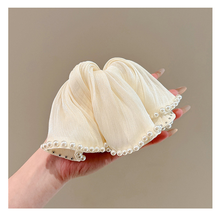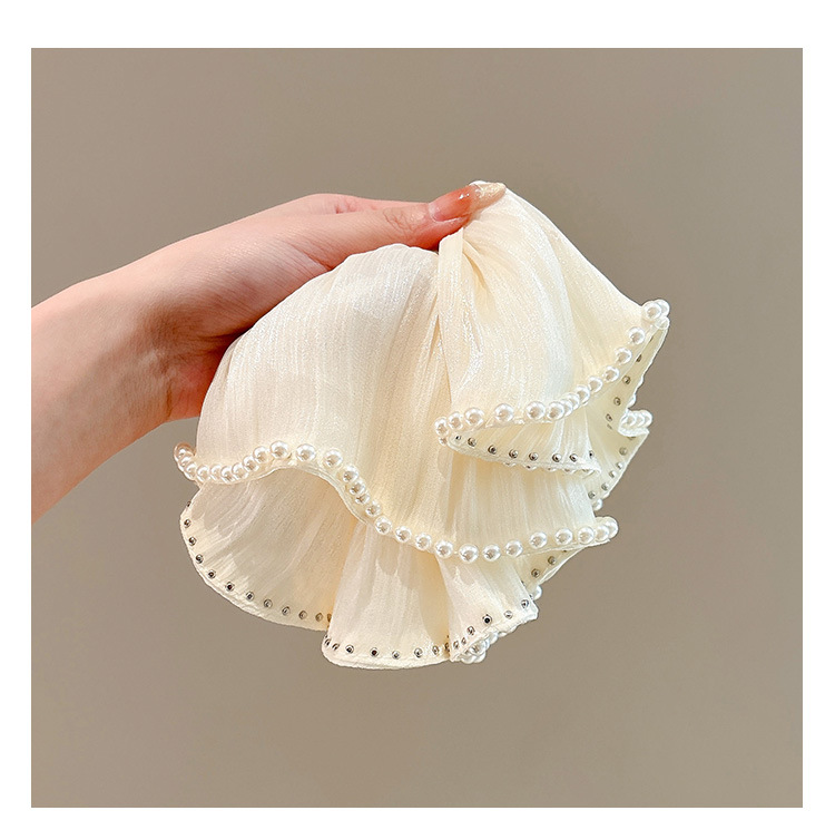 Temperamento coreano, borde de perlas, lazo para el cabello de intestino grueso, accesorios para el cabello, cabeza femenina, pliegues de alto nivel, sombreros de cuerda de lazo de borde ancho
