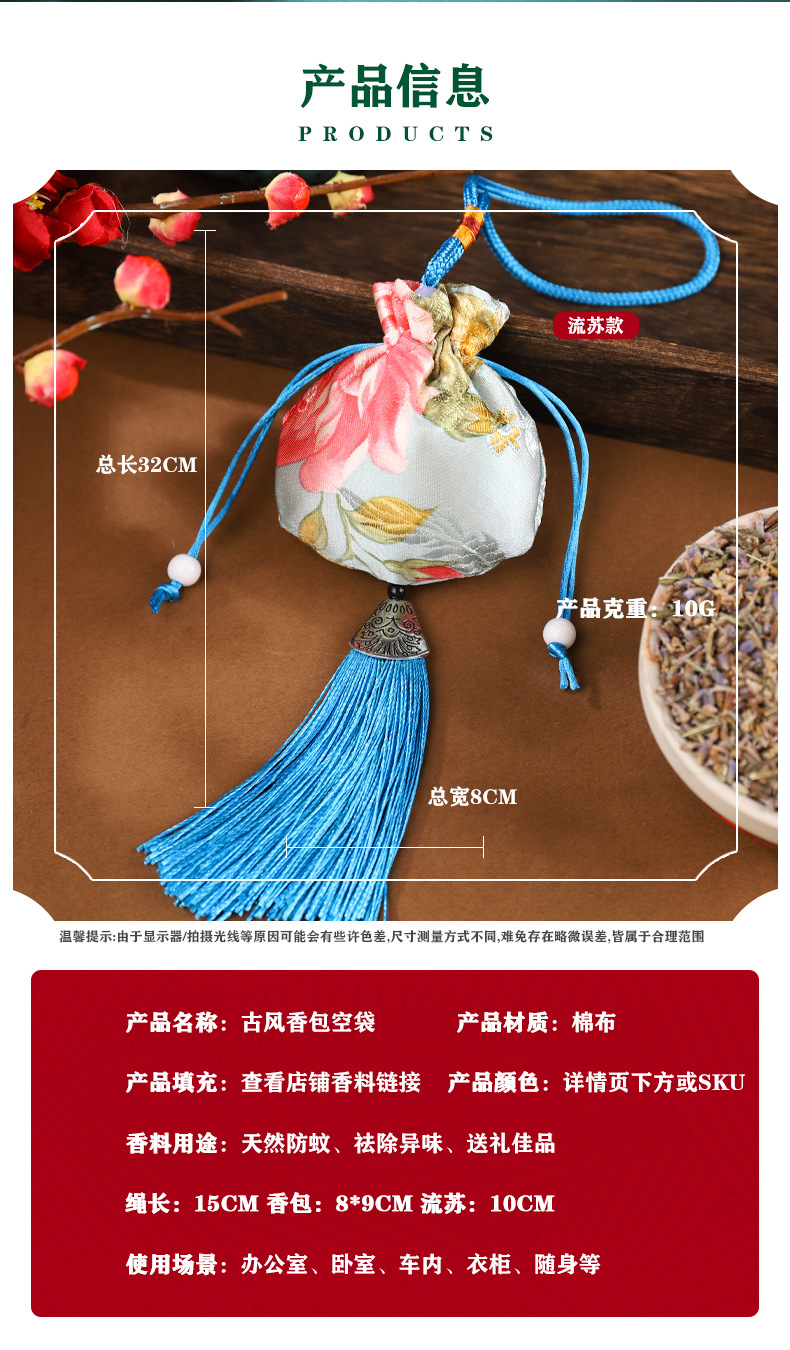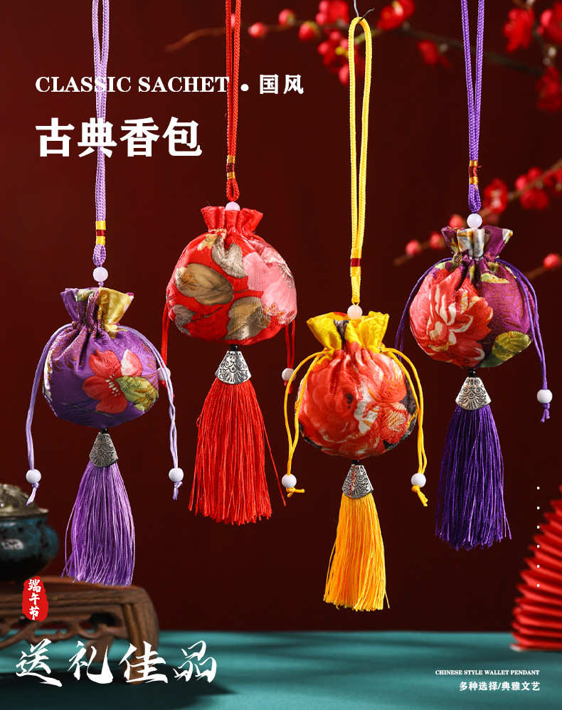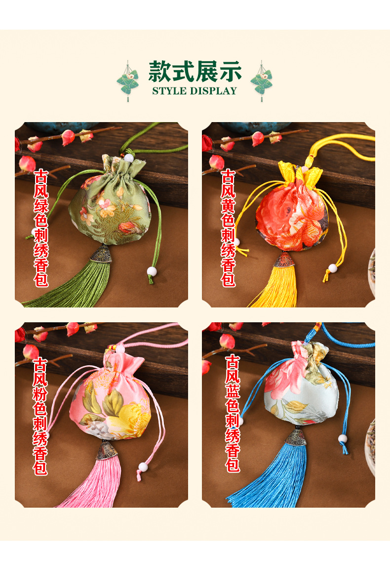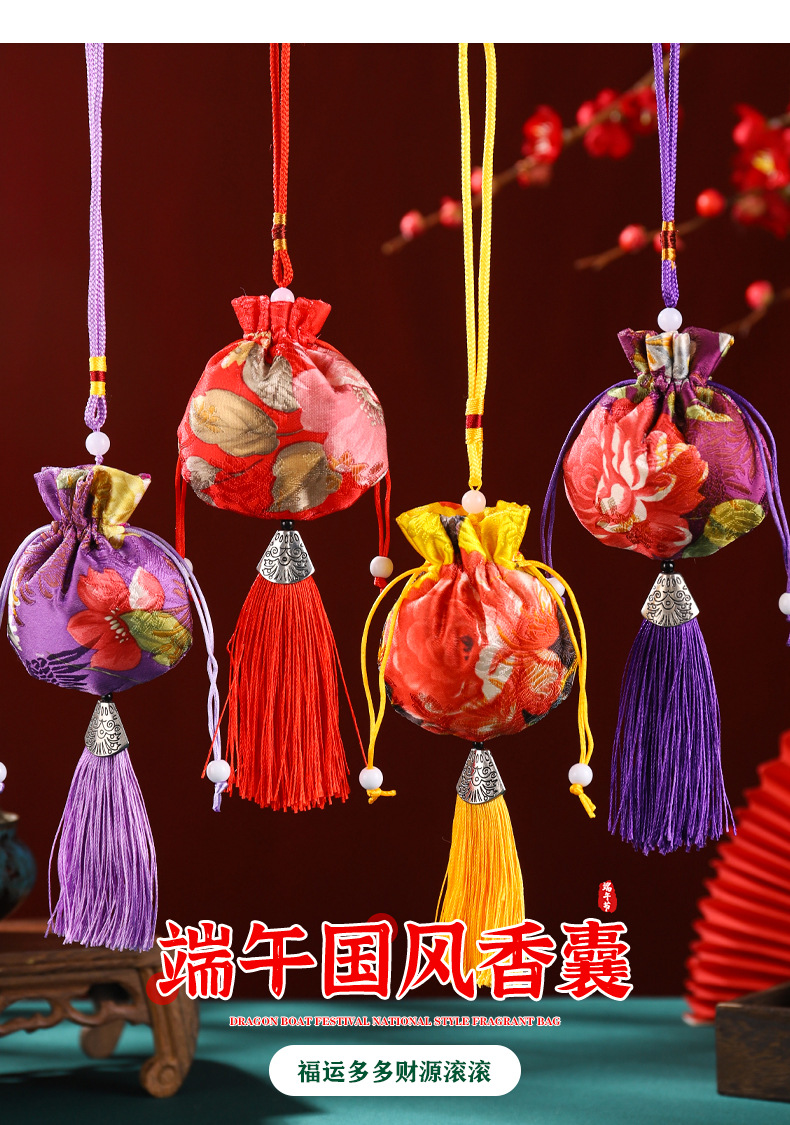 Dragon Boat Festival Bolsita Bolsita Estilo antiguo Bolsita repelente de mosquitos Bolso Bolsa vacía Bolsa de incienso Colgante de coche Colgante de coche