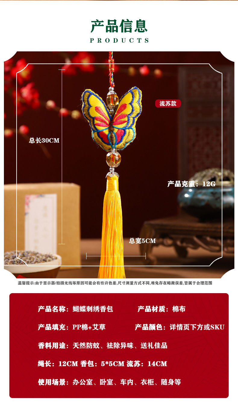 Bolsita del Festival del Bote del Dragón Bolsita del armario de estilo chino Bolsita de mariposa Decoración de la habitación Colgante del coche colgante colgante