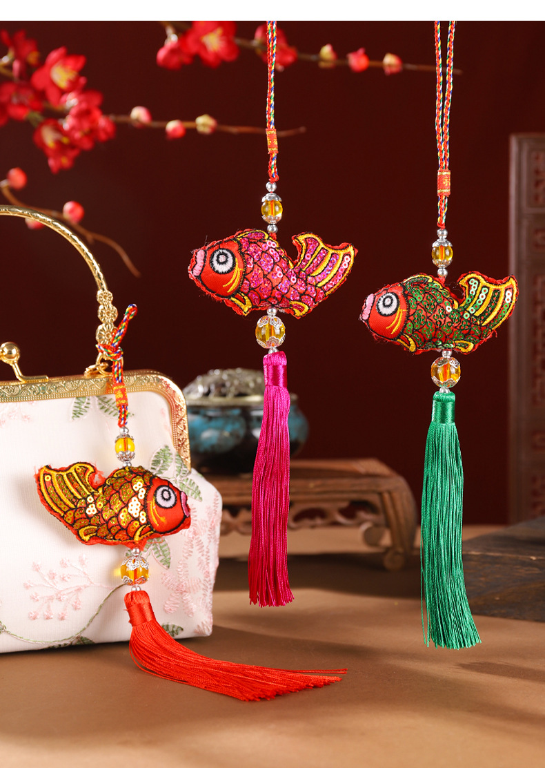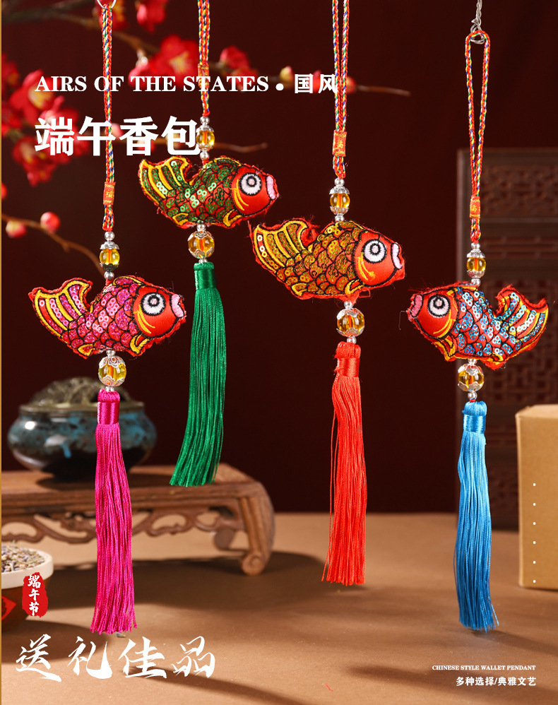 Dragon Boat Festival bolsita lentejuelas colgante de pescado artesanías especiales bolsita en forma de pez lentejuelas colgante de pescado pequeño colgante de coche portátil