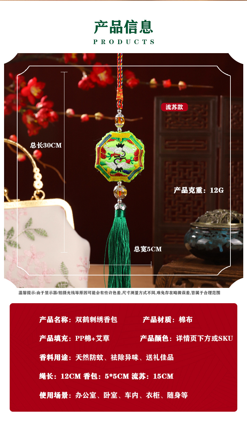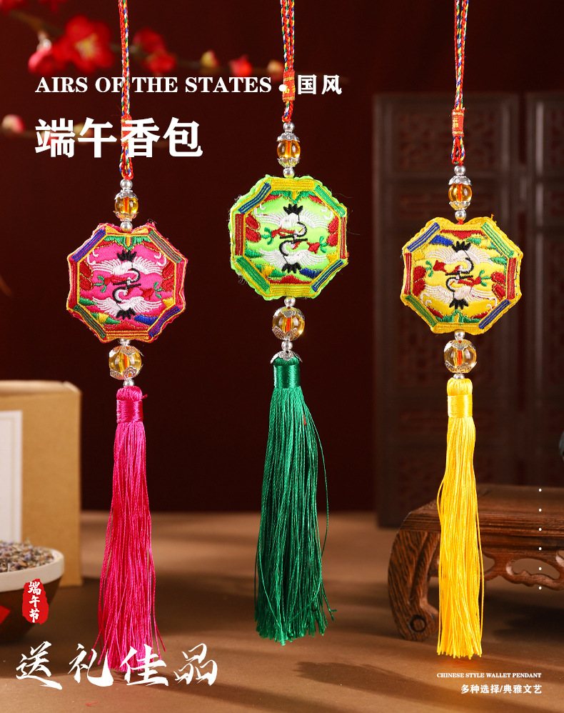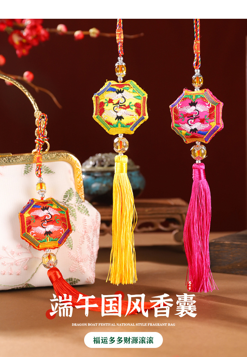 Dragon Boat Festival Bolsita Bolsita Bolso Colgante Carcasa Hebilla Bagua Bordado Crane Bolso Bolso Carcasa Colgante Colgante