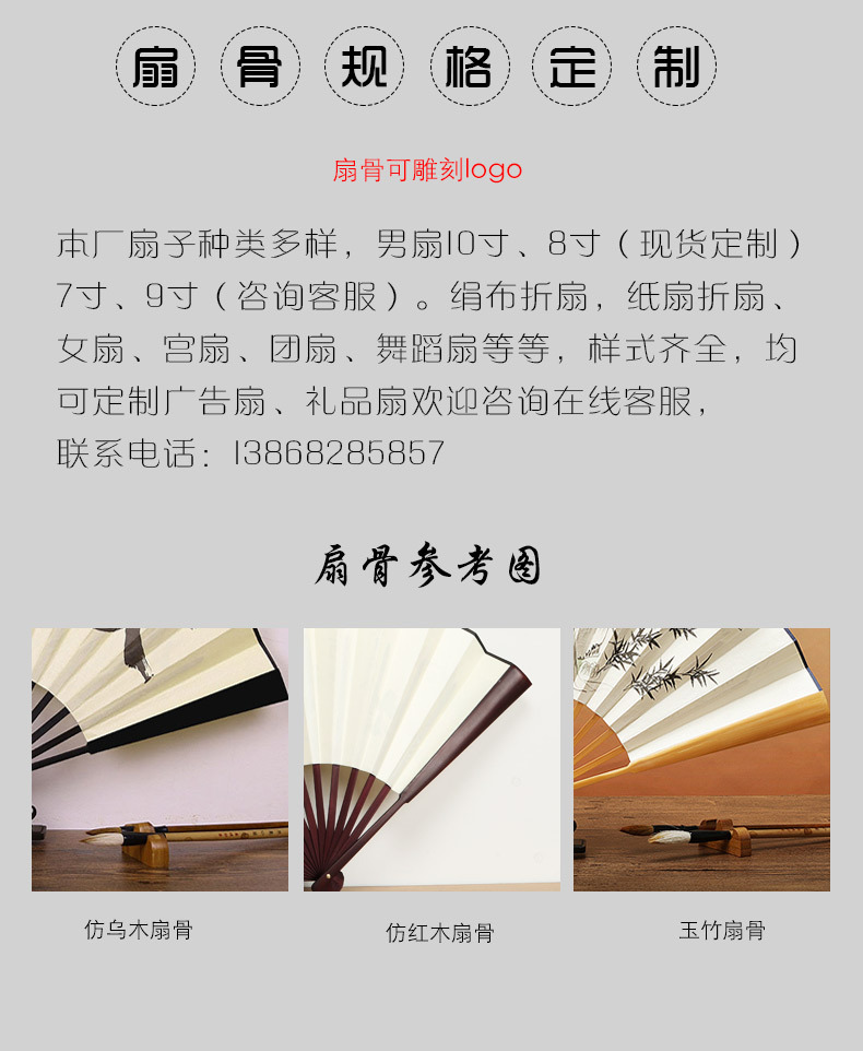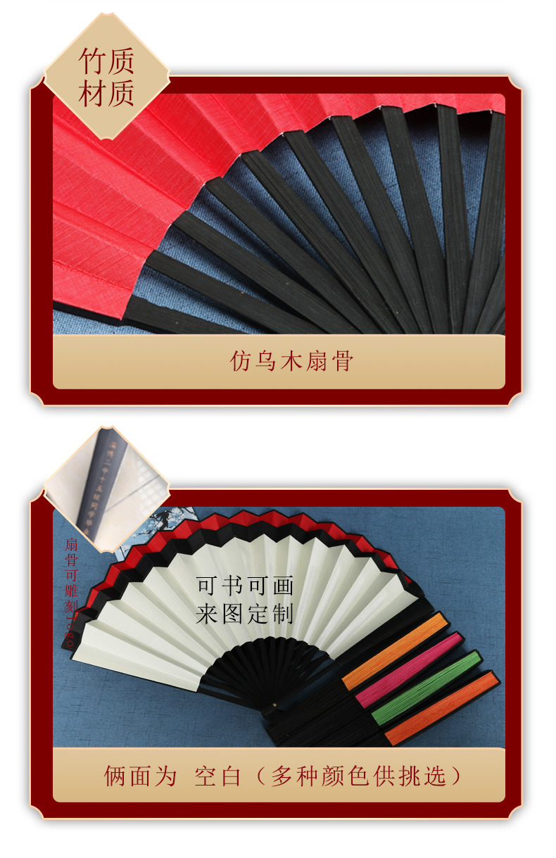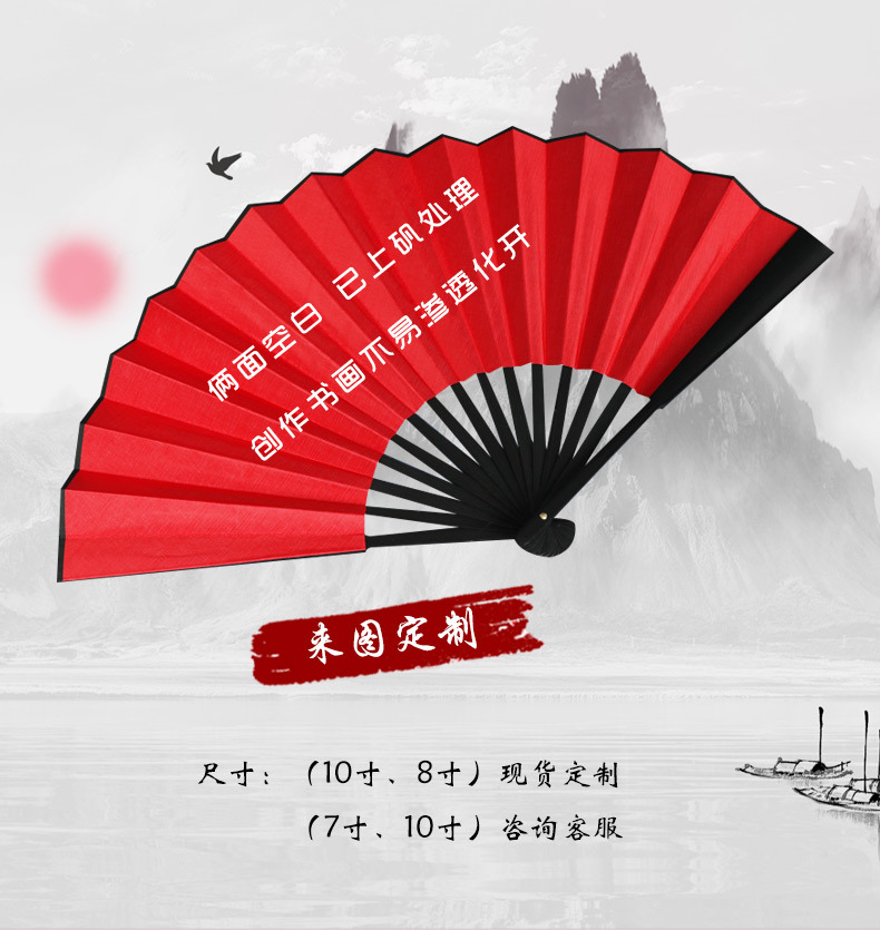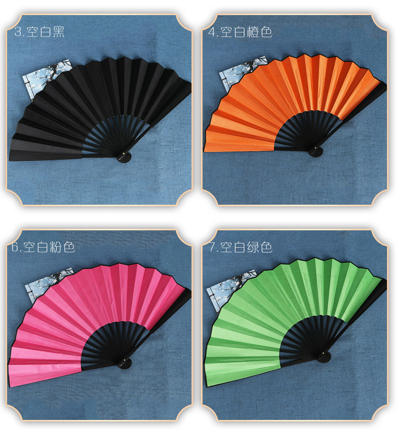 Abanico plegable de pintura y caligrafía pintado a mano de bambú de 10 pulgadas Abanico plegable de pintura y caligrafía en blanco de doble cara Abanico especial de creación de bricolaje Abanico plegable de tela de seda clásica