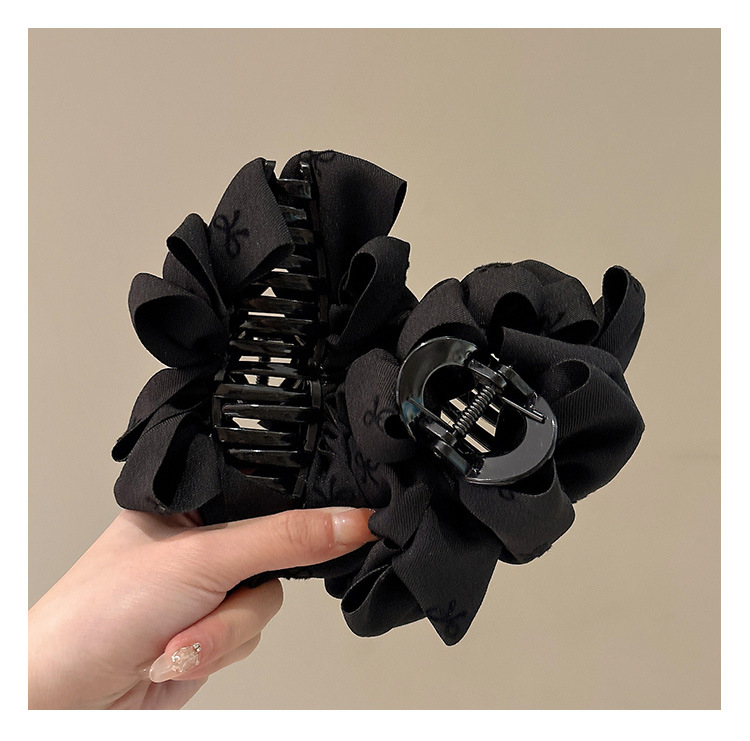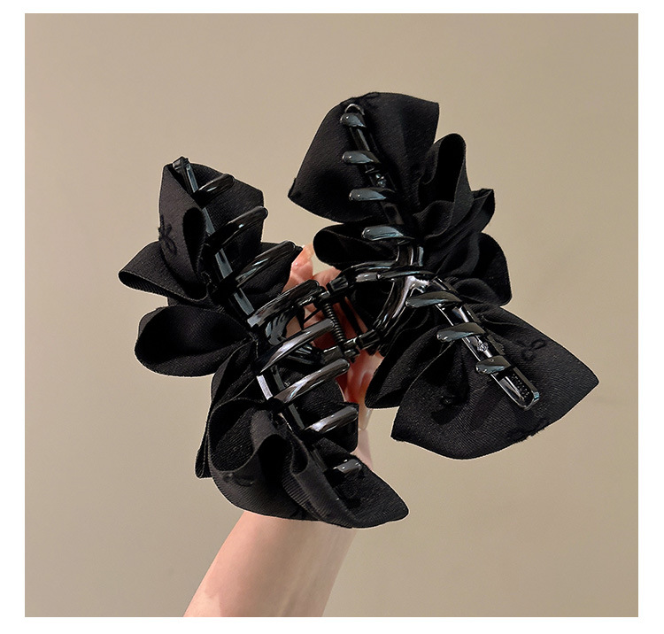 Temperamento simple, todo fósforo, lazo romántico negro, cabello en la parte posterior de la cabeza, exquisito, suave y elegante, clip de tiburón de versión pequeña
