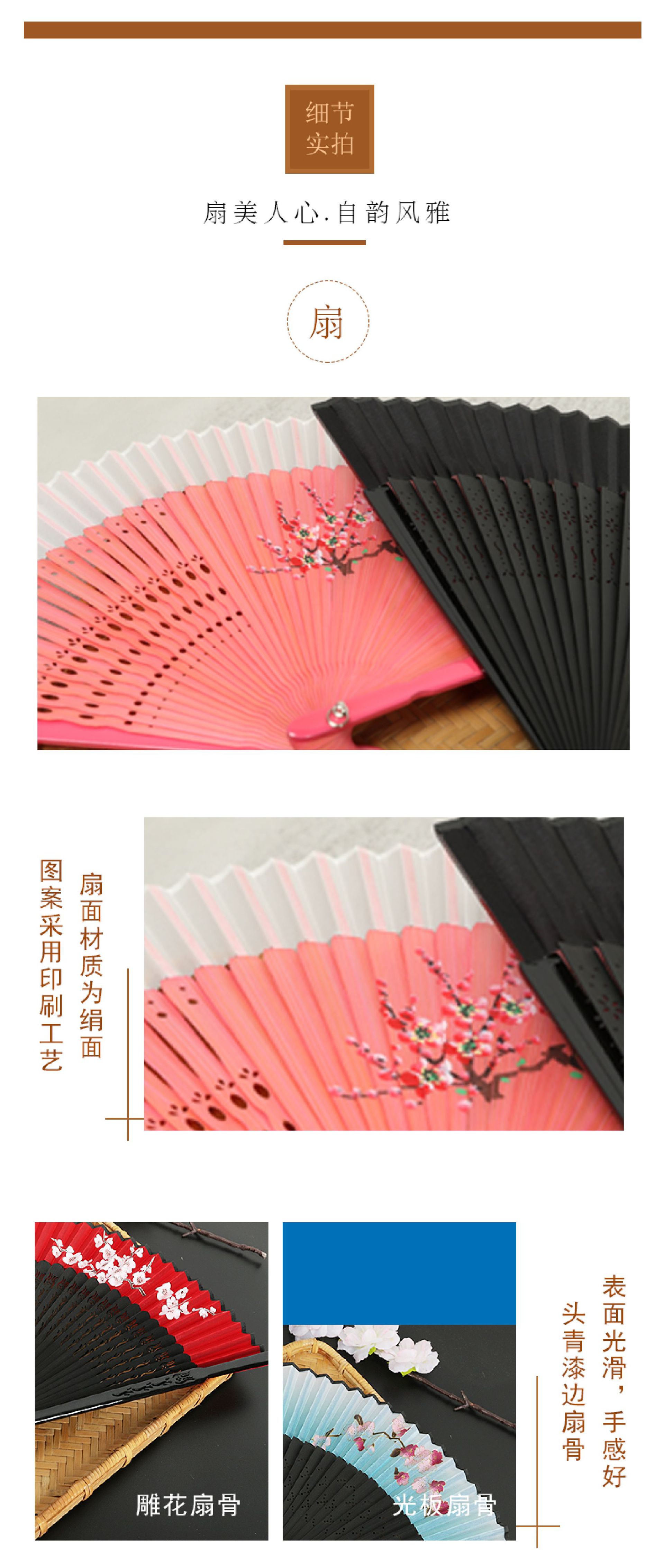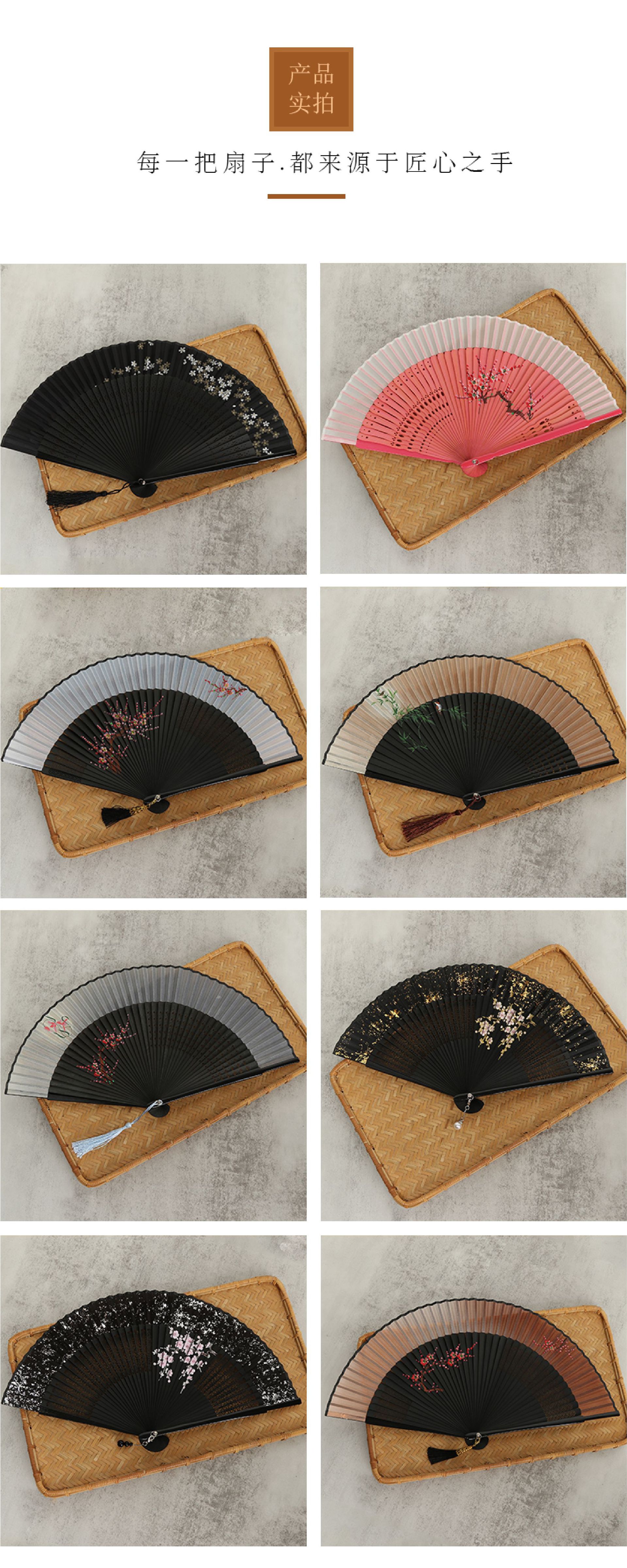 Ventilador plegable de Punta corta de bambú ventilador femenino pintado a mano ventilador de artesanía de impresión ventilador de estilo antiguo de estilo japonés ventilador de publicidad de regalo al por mayor