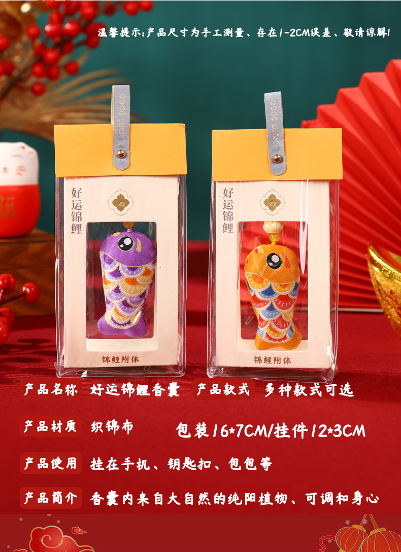 Lucky koi bolsita talismán de seguridad bolsa de loto bolsita portátil pequeño colgante adornos de coche Dragon Boat Festival bolsita