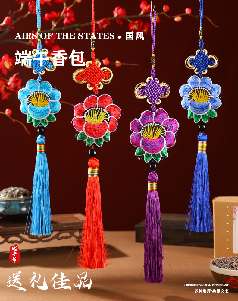 Bolsita del Dragon Boat Festival Bolsita bordada Colgante de bolsa de loto Colgante de coche Bolsita del Dragon Boat Festival Bolso de loto