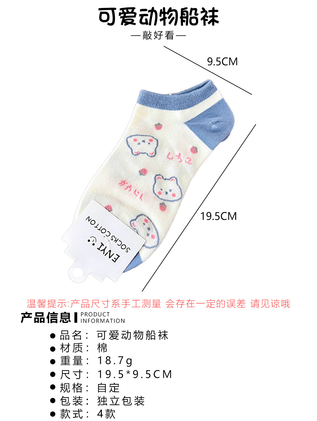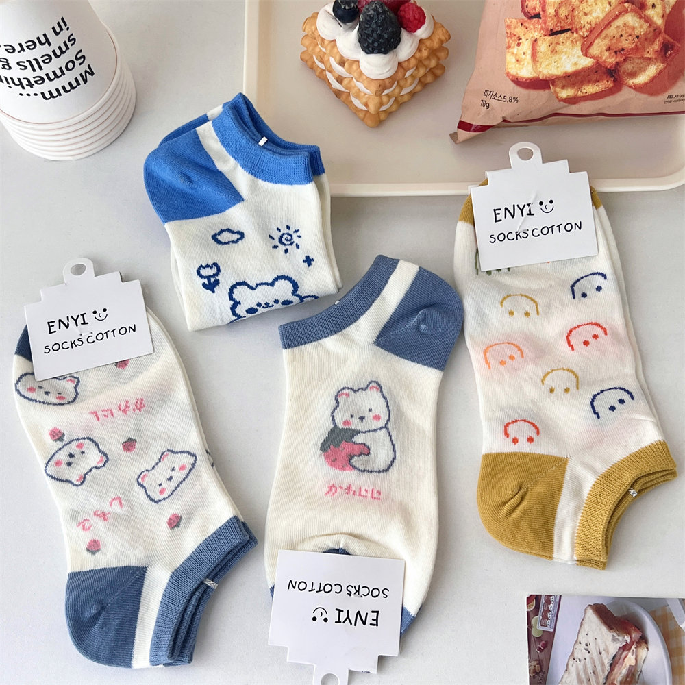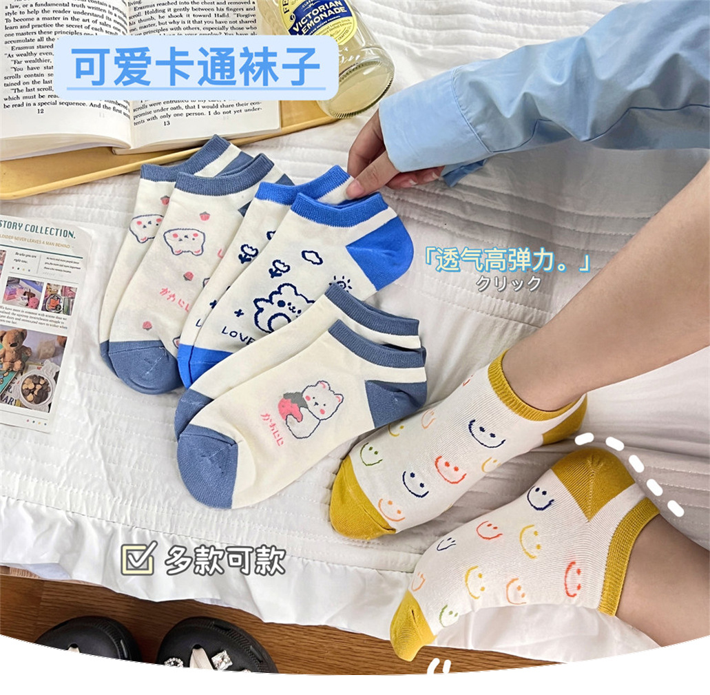 Dibujos animados calcetines de algodón calcetines invisibles calcetines cortos al por mayor femenino Lindo Oso de dibujos animados calcetines barco primavera y verano nueva chica