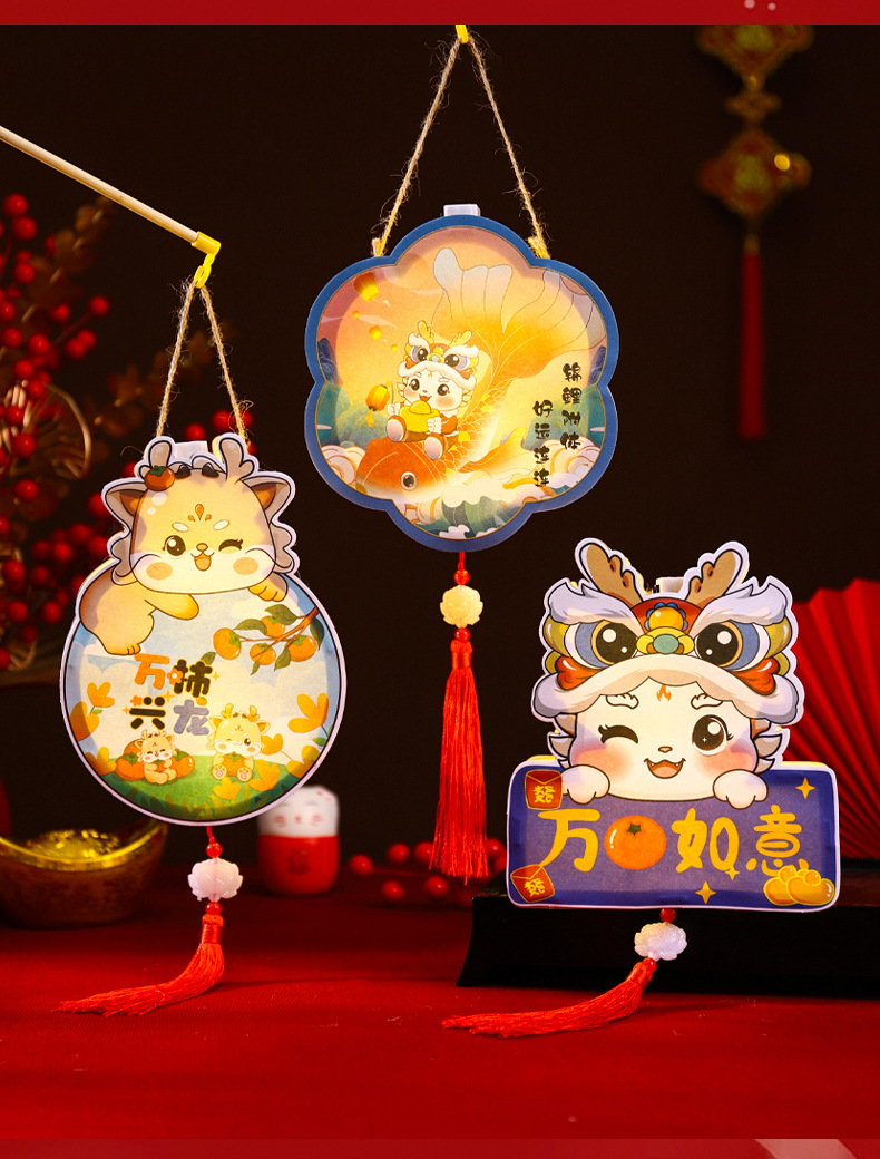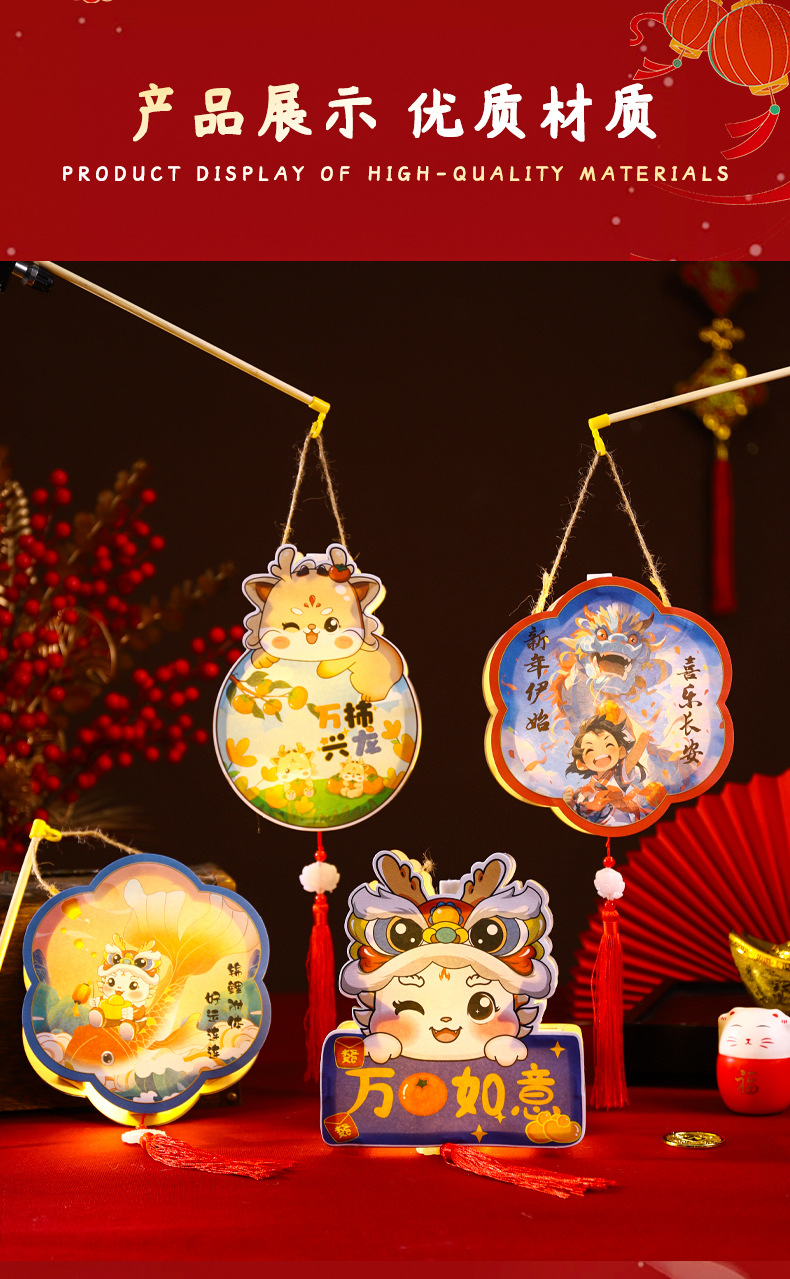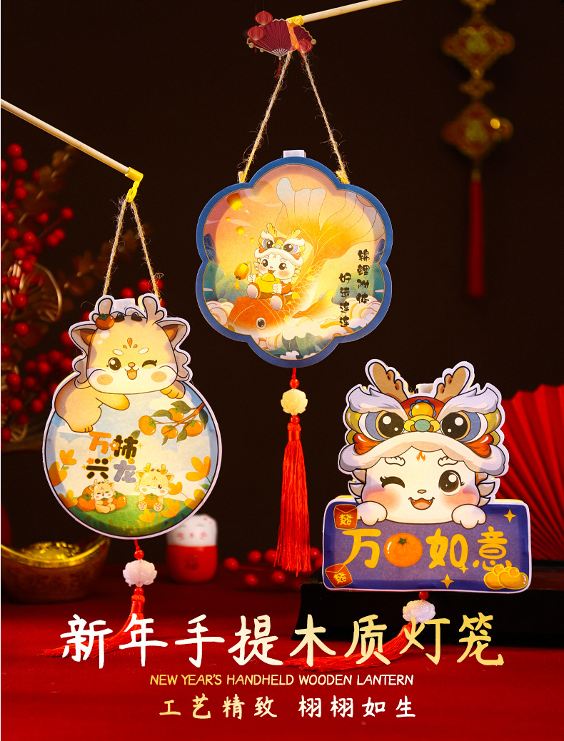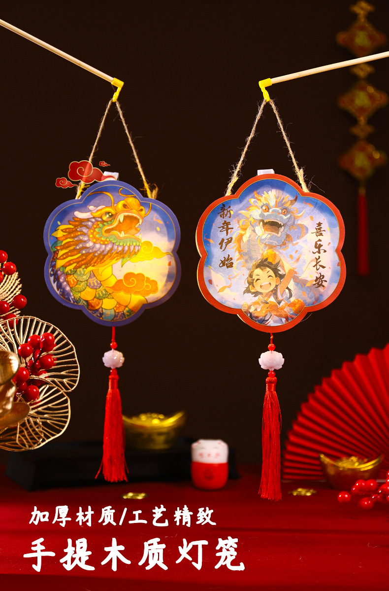 2024 dragón día de Año Nuevo linterna de madera linterna portátil para niños linterna Festival de la linterna paquete de material de bricolaje hecho a mano