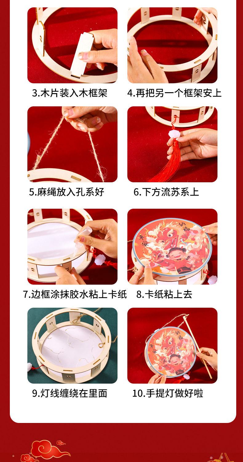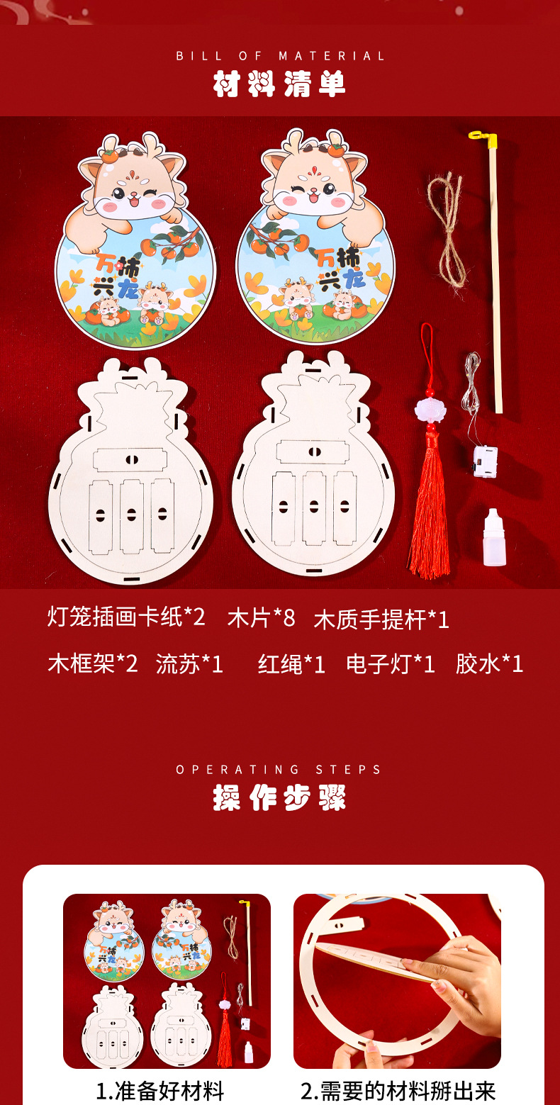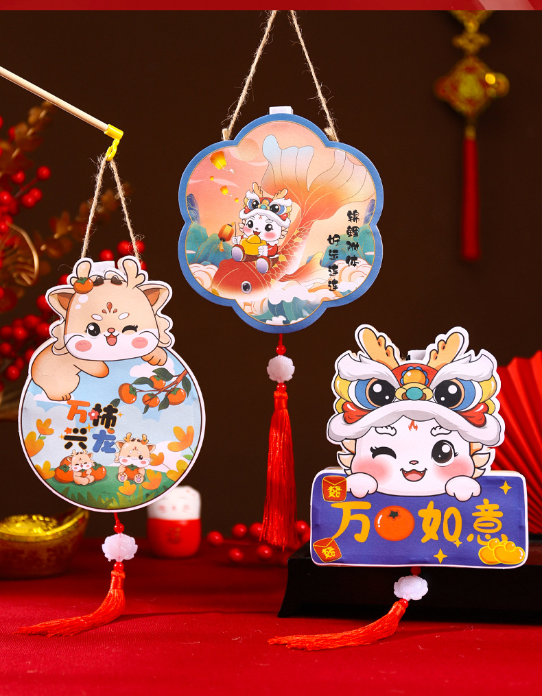 2024 dragón día de Año Nuevo linterna de madera linterna portátil para niños linterna Festival de la linterna paquete de material de bricolaje hecho a mano