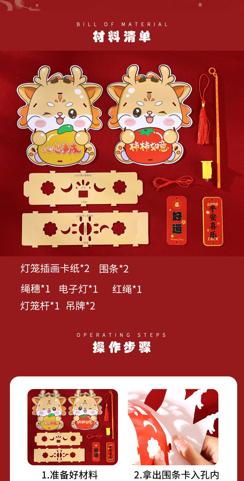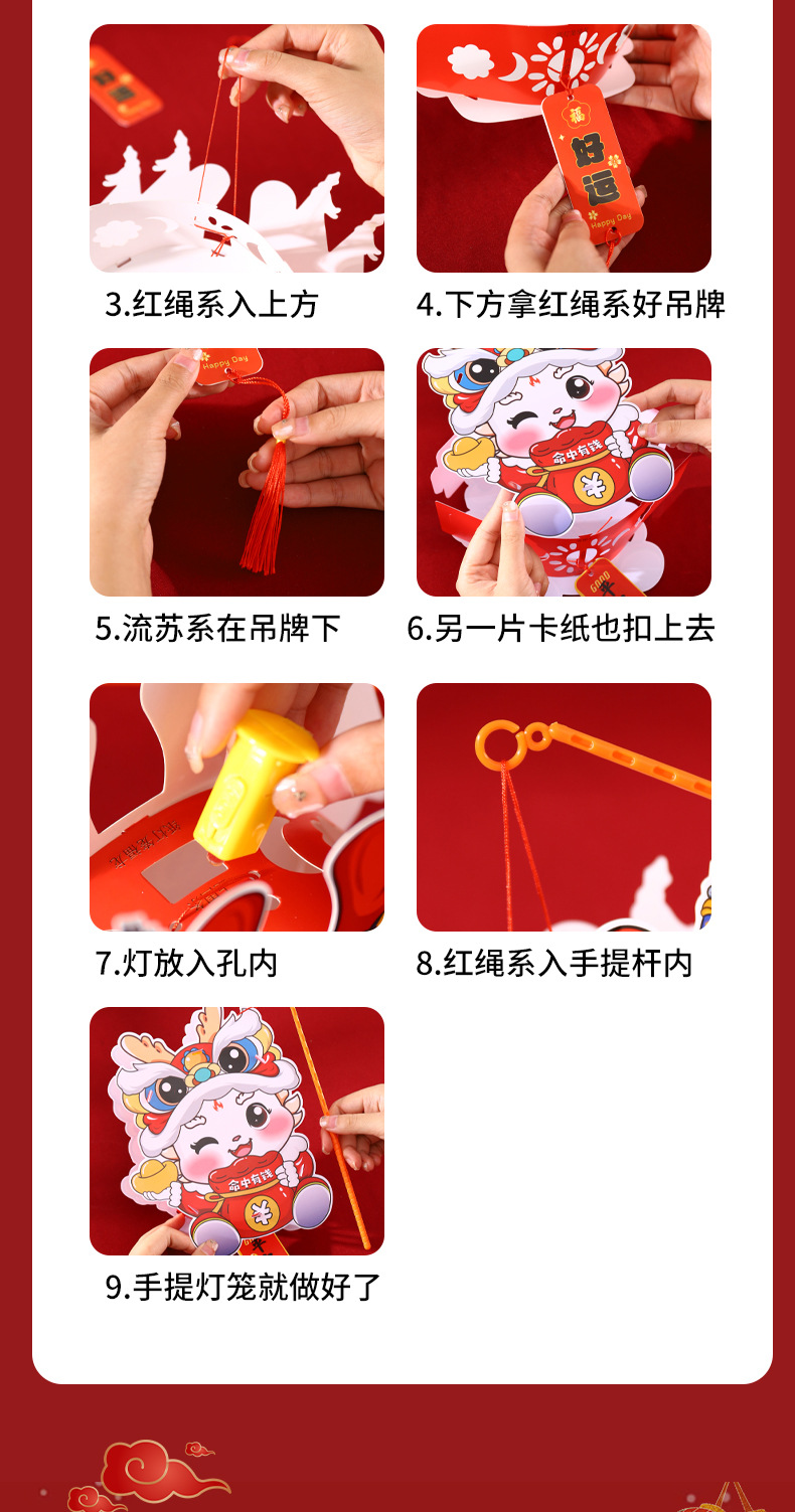 2024 nuevo Dragón Año Nuevo linterna PVC DE LOS NIÑOS portátil DIY material hecho a mano paquete luminoso Palacio lámpara