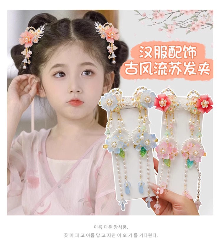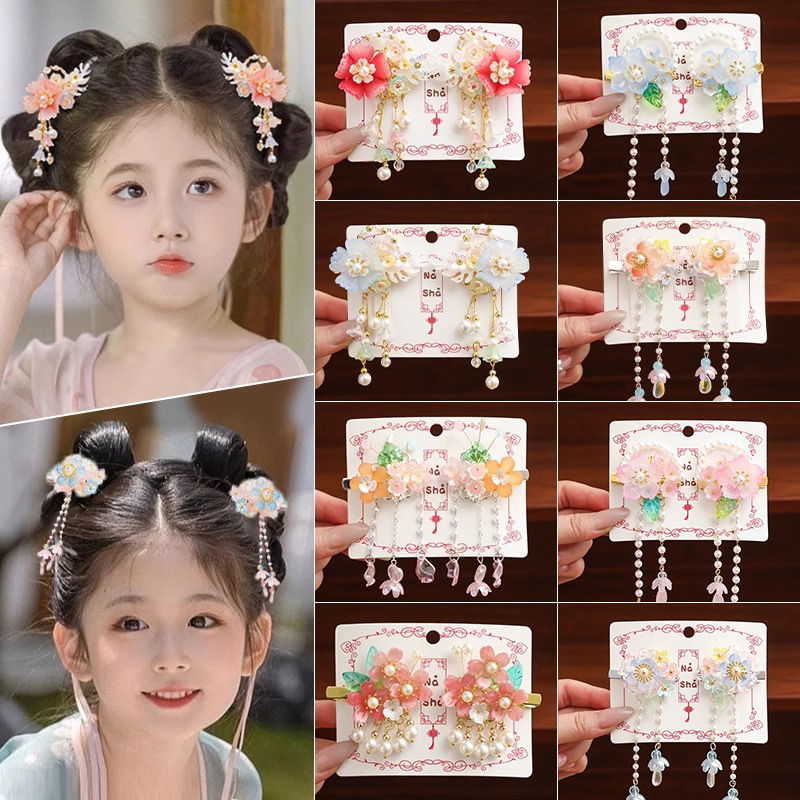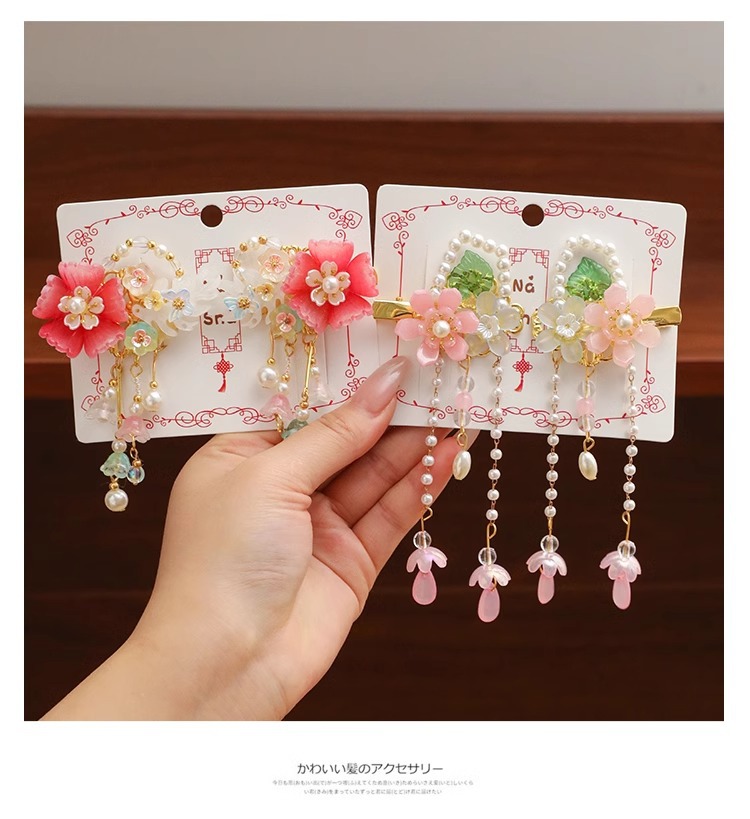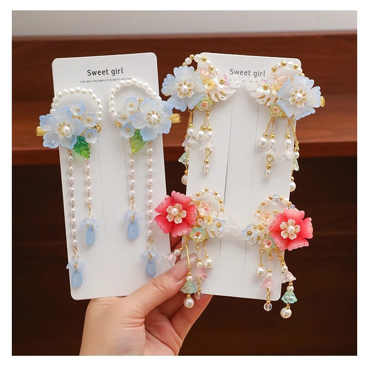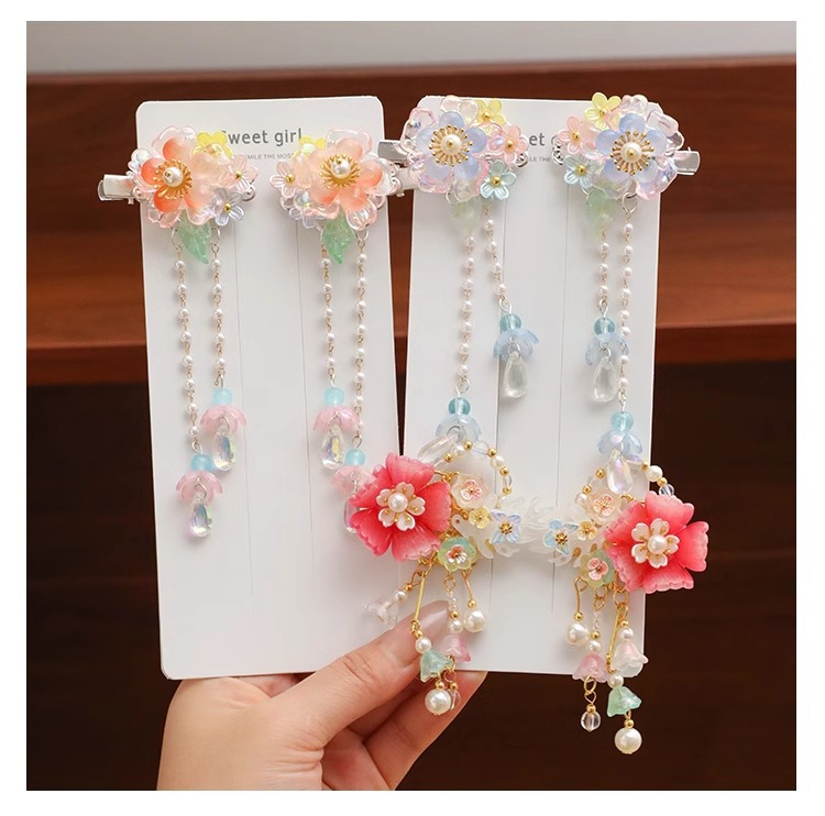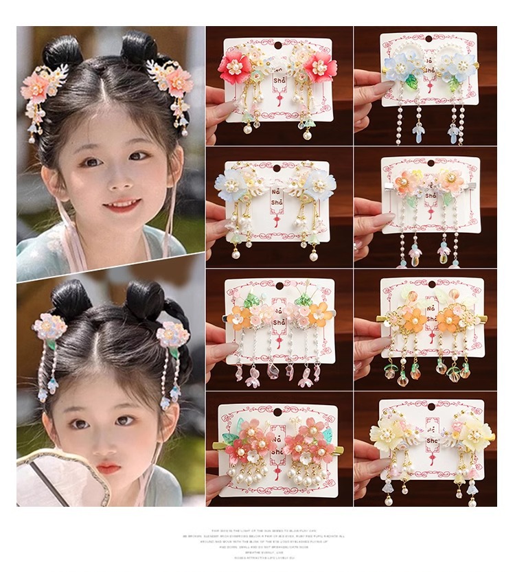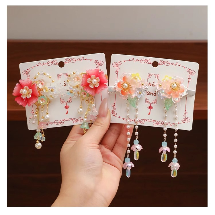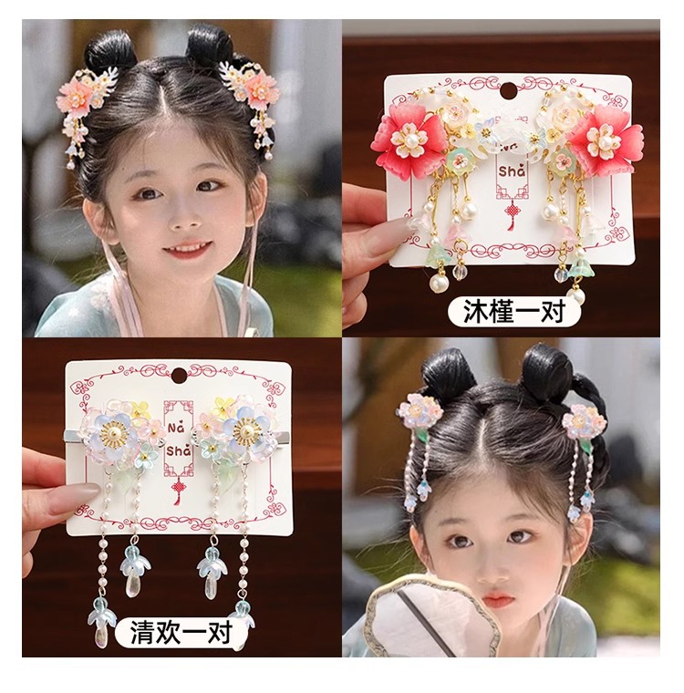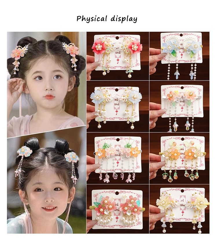 Horquilla de los niños estilo antiguo hanfu tocado lindo perla flor borla clip bebé cinta accesorios para el cabello
