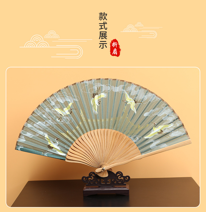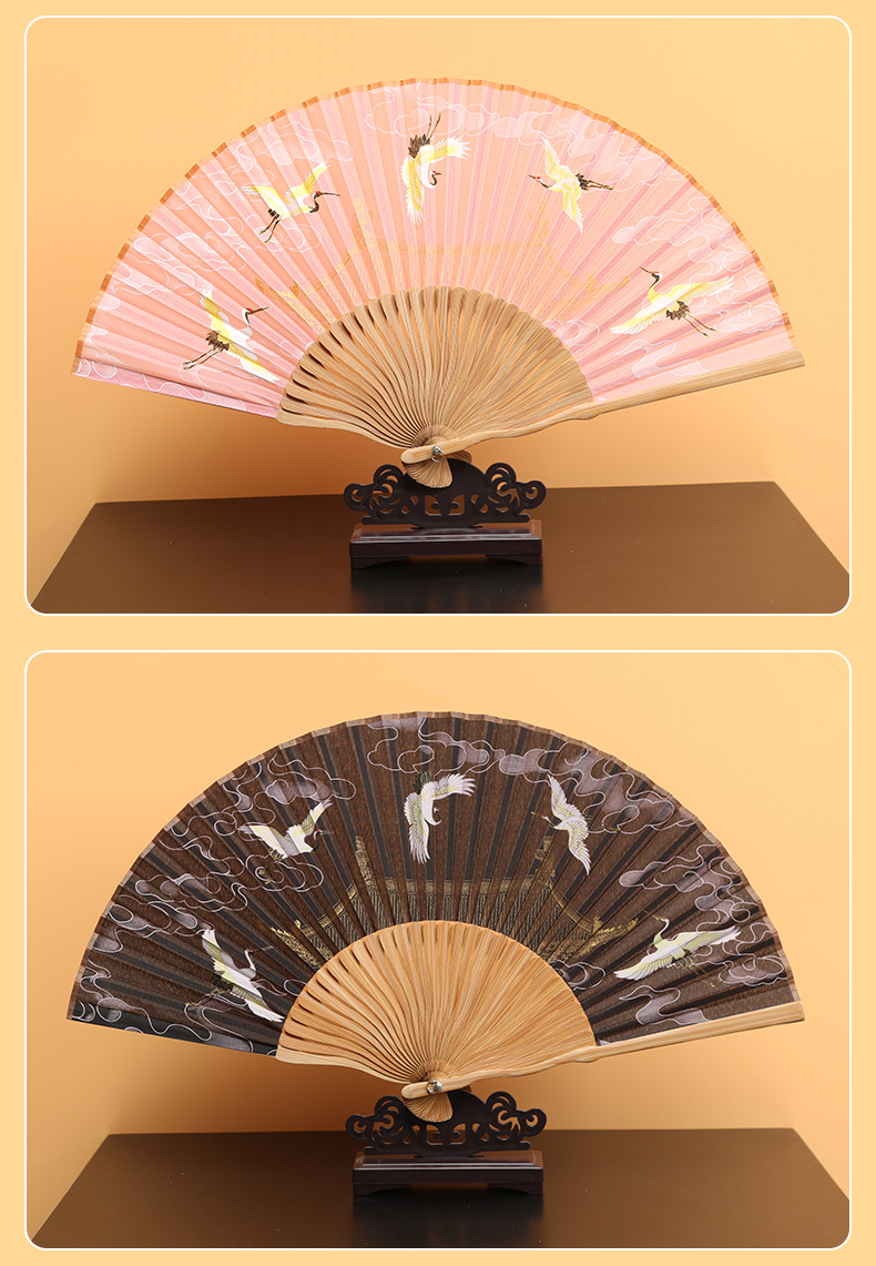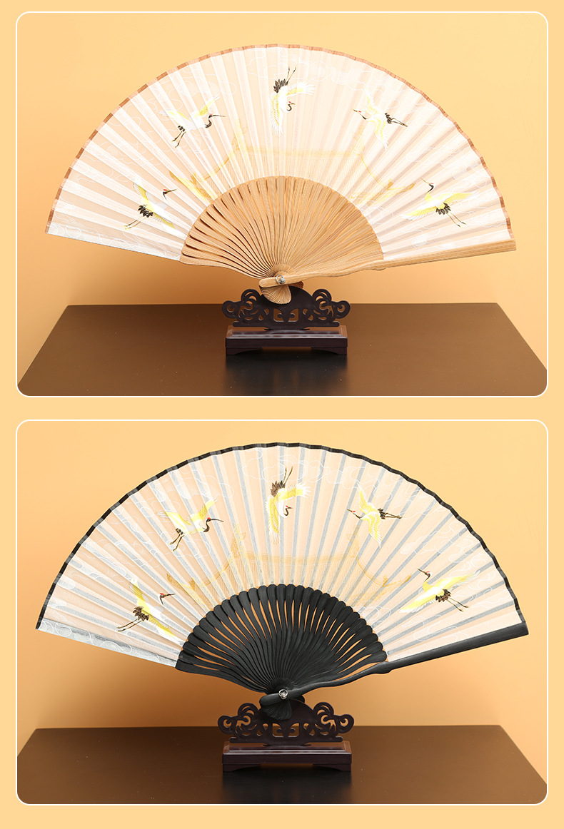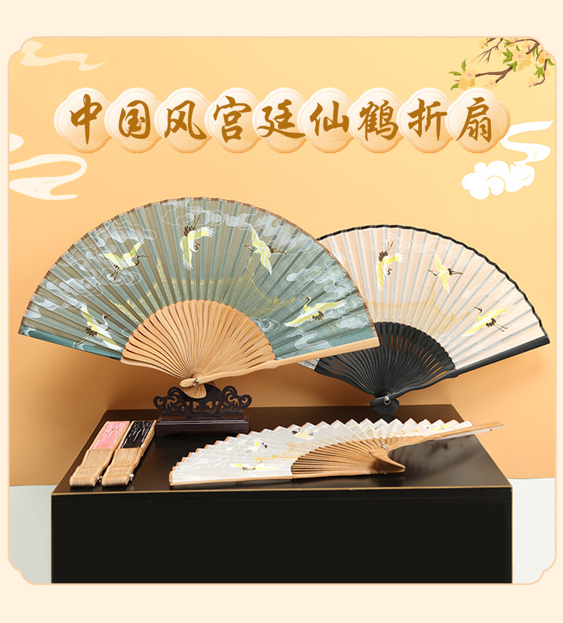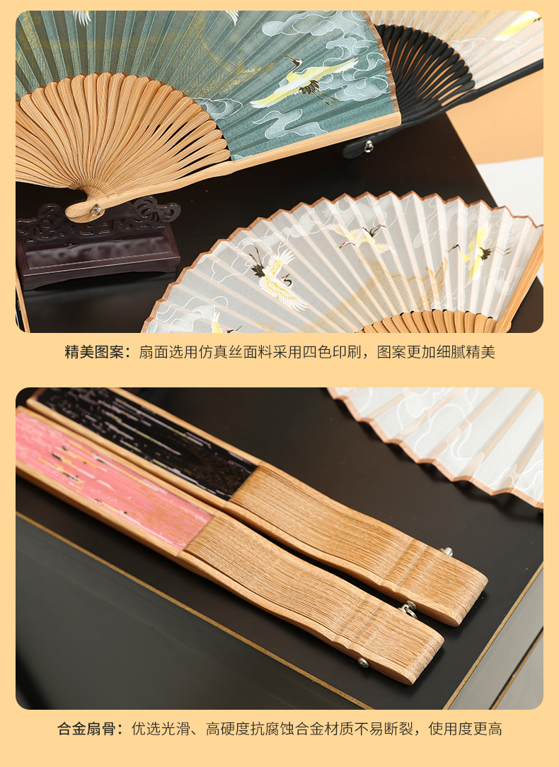 Canción Huizong Ruihe imagen ventilador de moda nacional al por mayor ventilador plegable de la grúa de estilo nacional Hanfu accesorios portátil estilo antiguo ventilador al por mayor