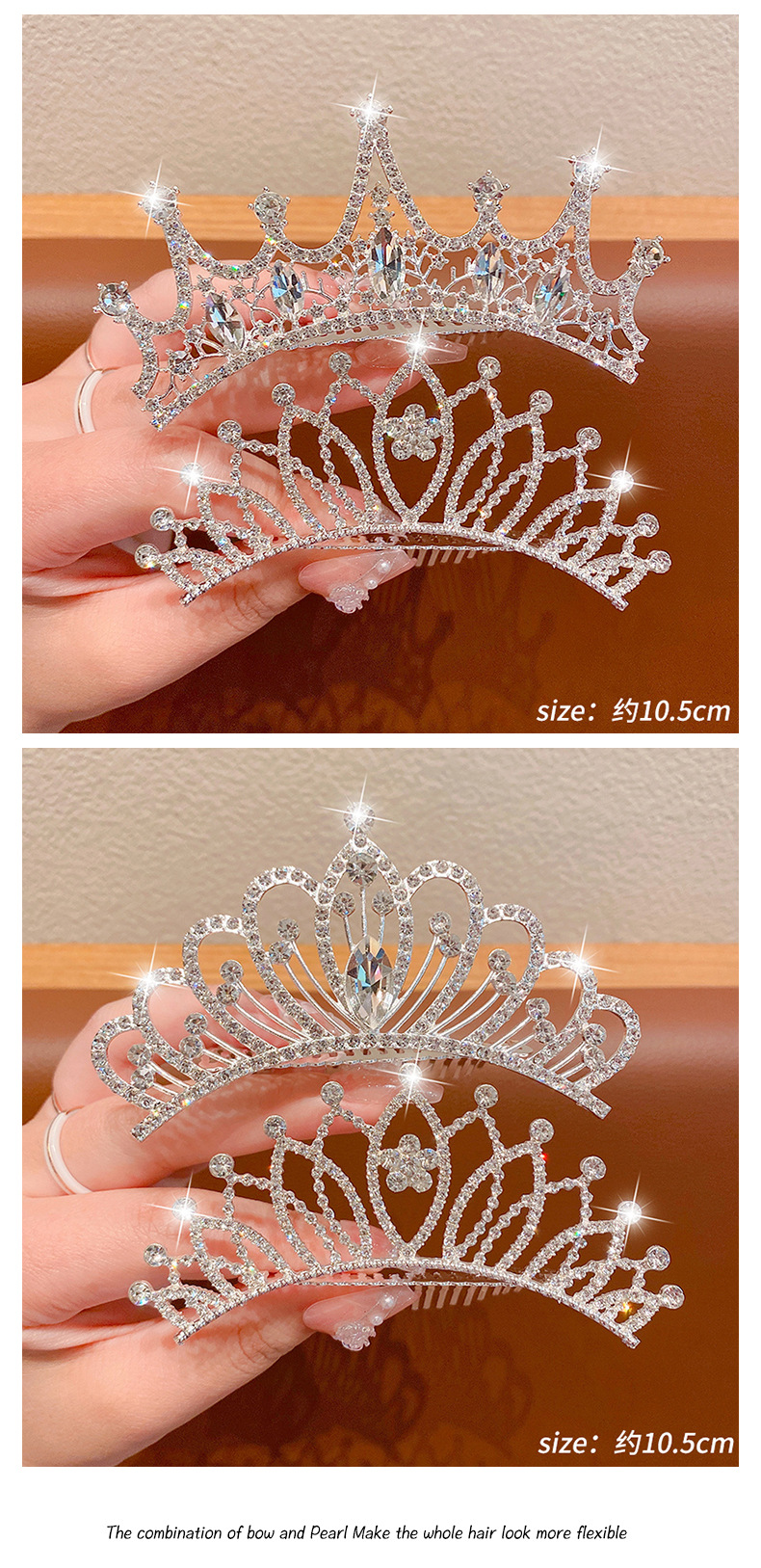 Corona de las niñas accesorios para el cabello rendimiento de cumpleaños de los niños brillante perla Rhinestone corona princesa peine del pelo vestido accesorios horquilla