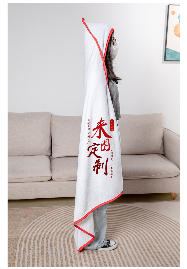 Manta de baño con capucha para niños xqds0019a, franela de 300g, bata de baño personalizable para adultos, manta de secado rápido y agradable al tacto.