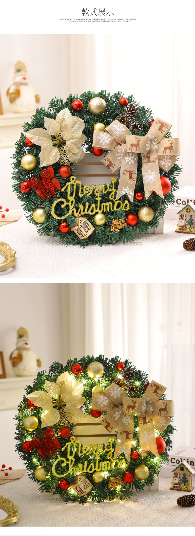 Amazon Navidad guirnalda 40/50/60cm simulación Navidad guirnalda adornos Navidad decoraciones colgante puerta colgante