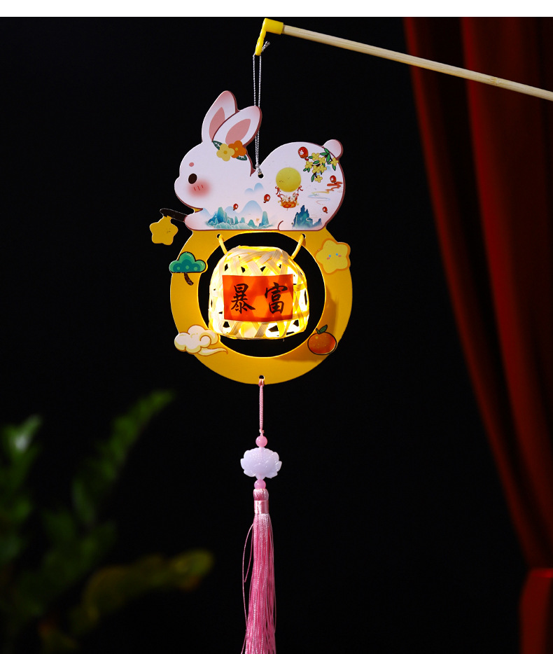 2025 nuevo farol del Festival del Medio Otoño diy hecho a mano bolso para niños farol de conejo de estilo chino farol de palacio farol pequeño de bambú