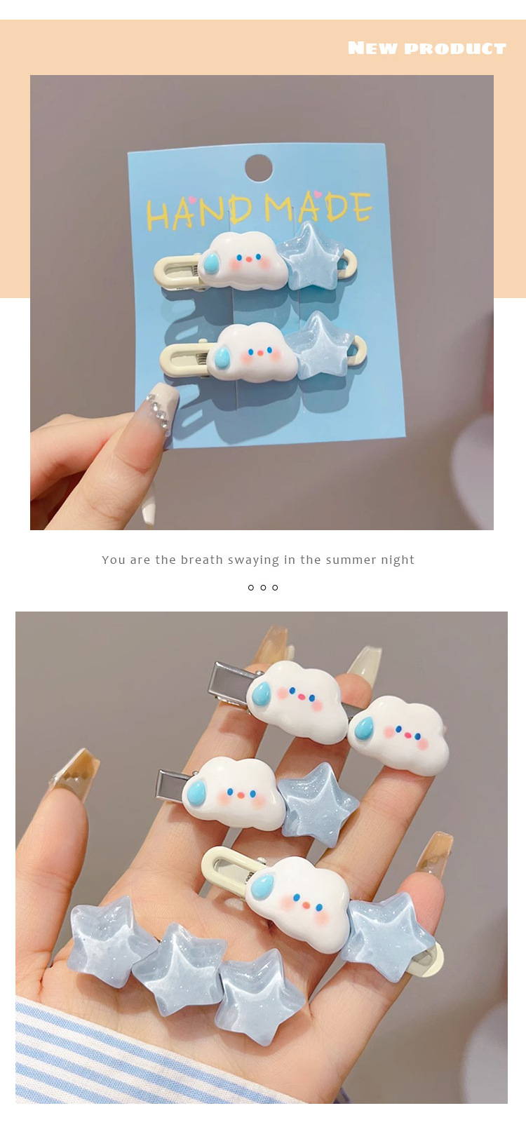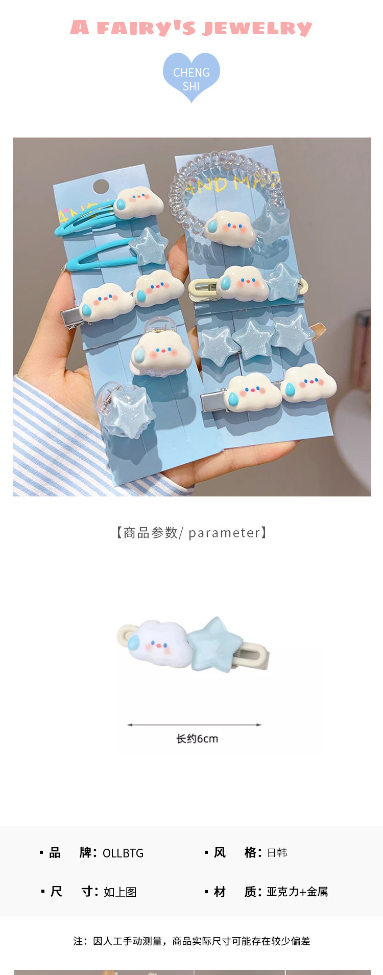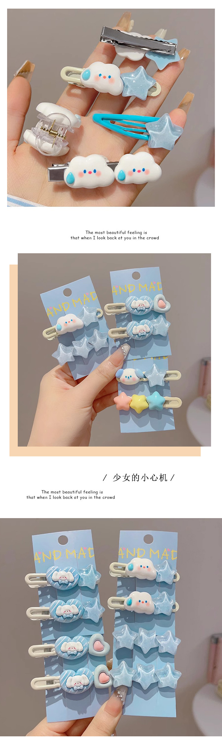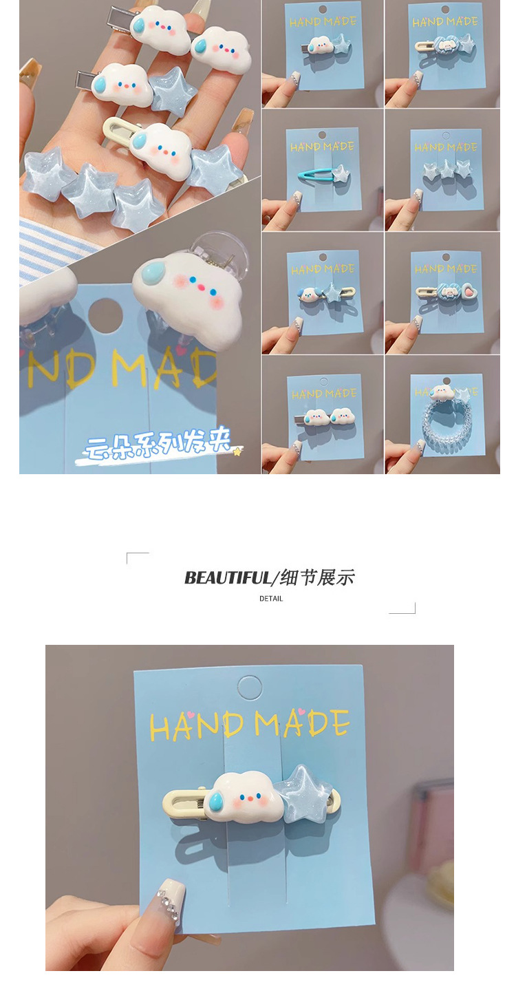 Linda horquilla de estrella de nubes flequillo cabello roto pequeño horquilla hembra frente lateral clip de pico de pato tocado de dibujos animados anillo para el cabello