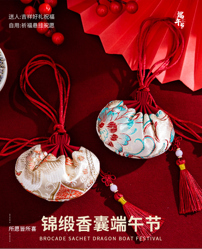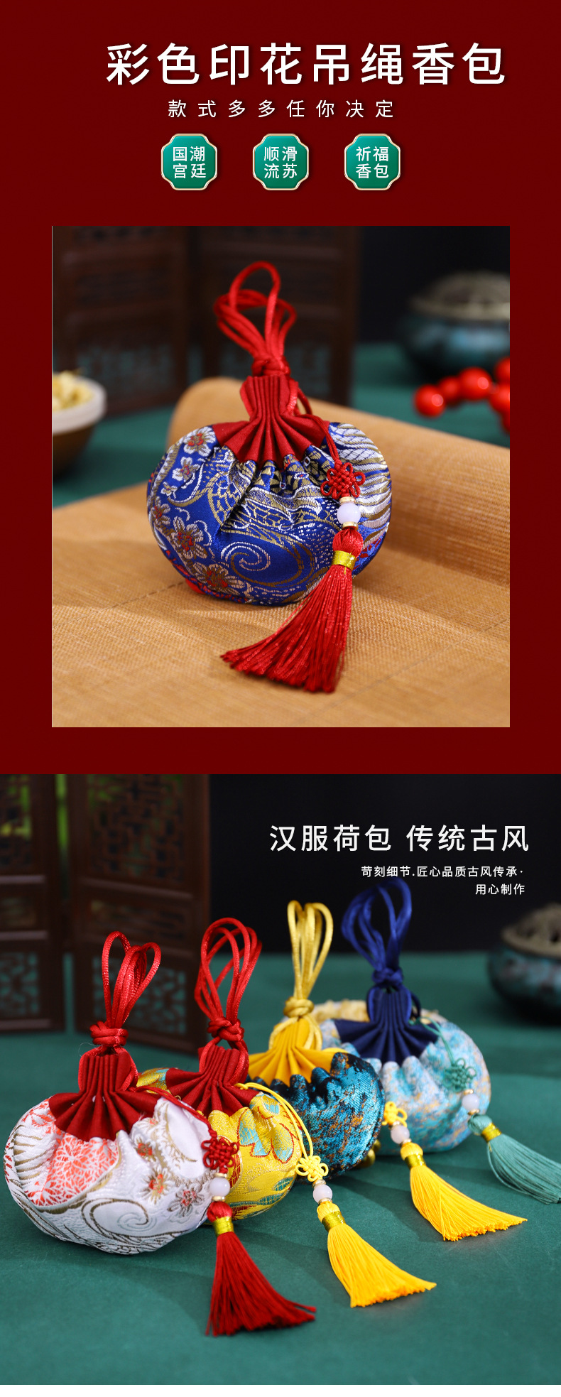 Dragon Boat Festival bolsita estilo antiguo bolsa de loto accesorios Hanfu adornos bolsa vacía embalaje Halter portátil coche colgando aromaterapia repelente de mosquitos