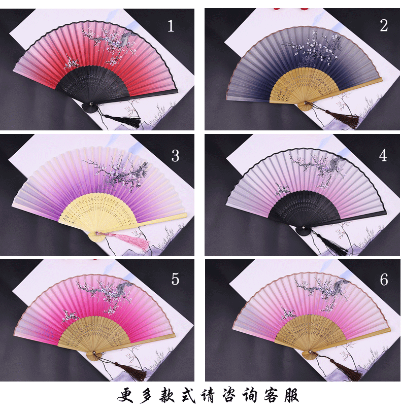 En stock al por mayor de bambú estilo chino estilo antiguo hanfu ventilador plegable sonrisa ventilador Flor del ciruelo regalo ventilador puede ser personalizado