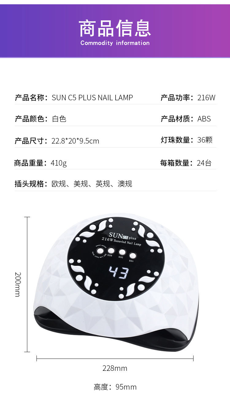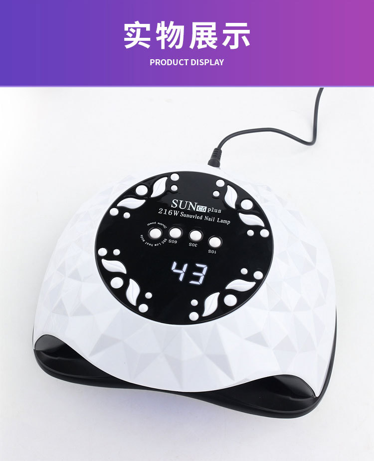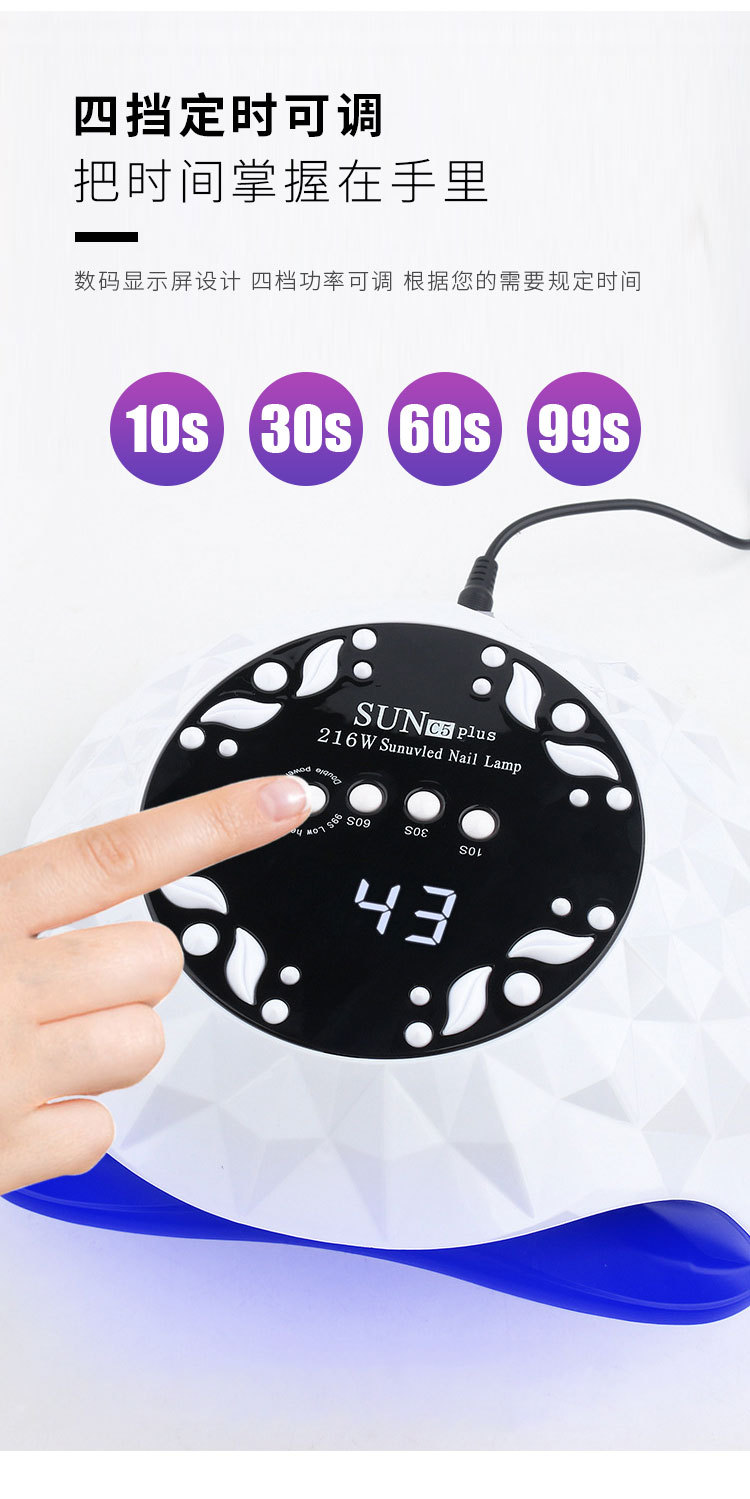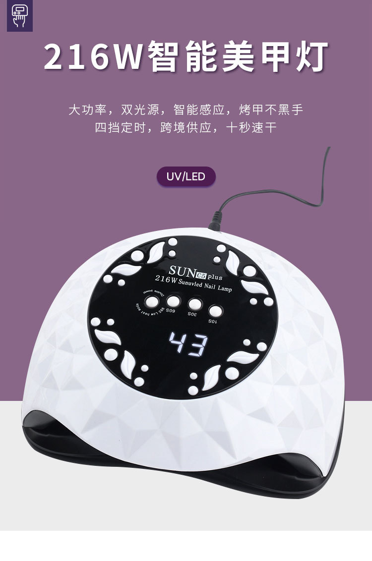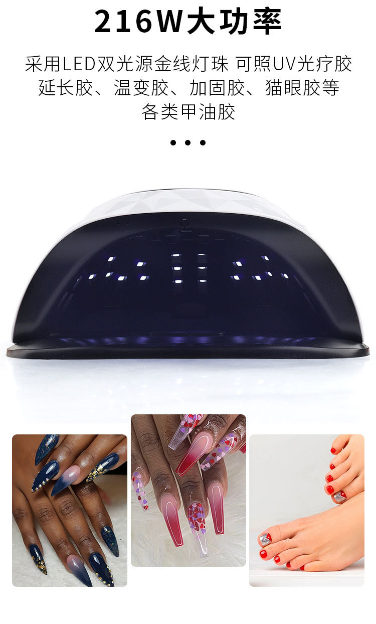 Lámpara de uñas de alta potencia Amazon de 216W, lámpara de fototerapia para uñas, secado rápido, lámpara de curado de gel para uñas de salón, lámpara de curado de esmalte de uñas, transfronteriza