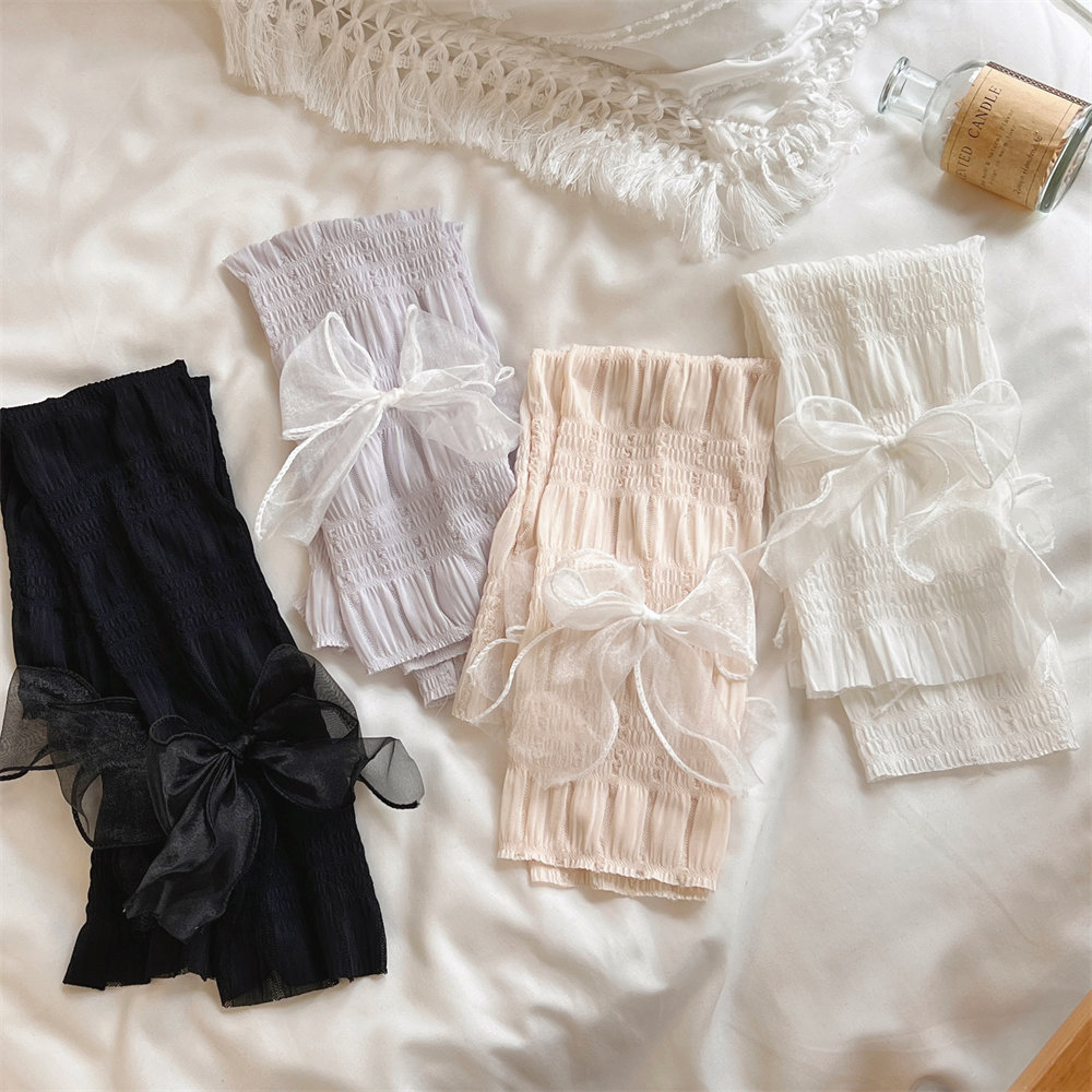 Funda de protección solar de seda de hielo de verano, manga de protección del corazón de niña de estilo de ballet salvaje, lazo, funda de brazo de ciclismo transpirable al por mayor